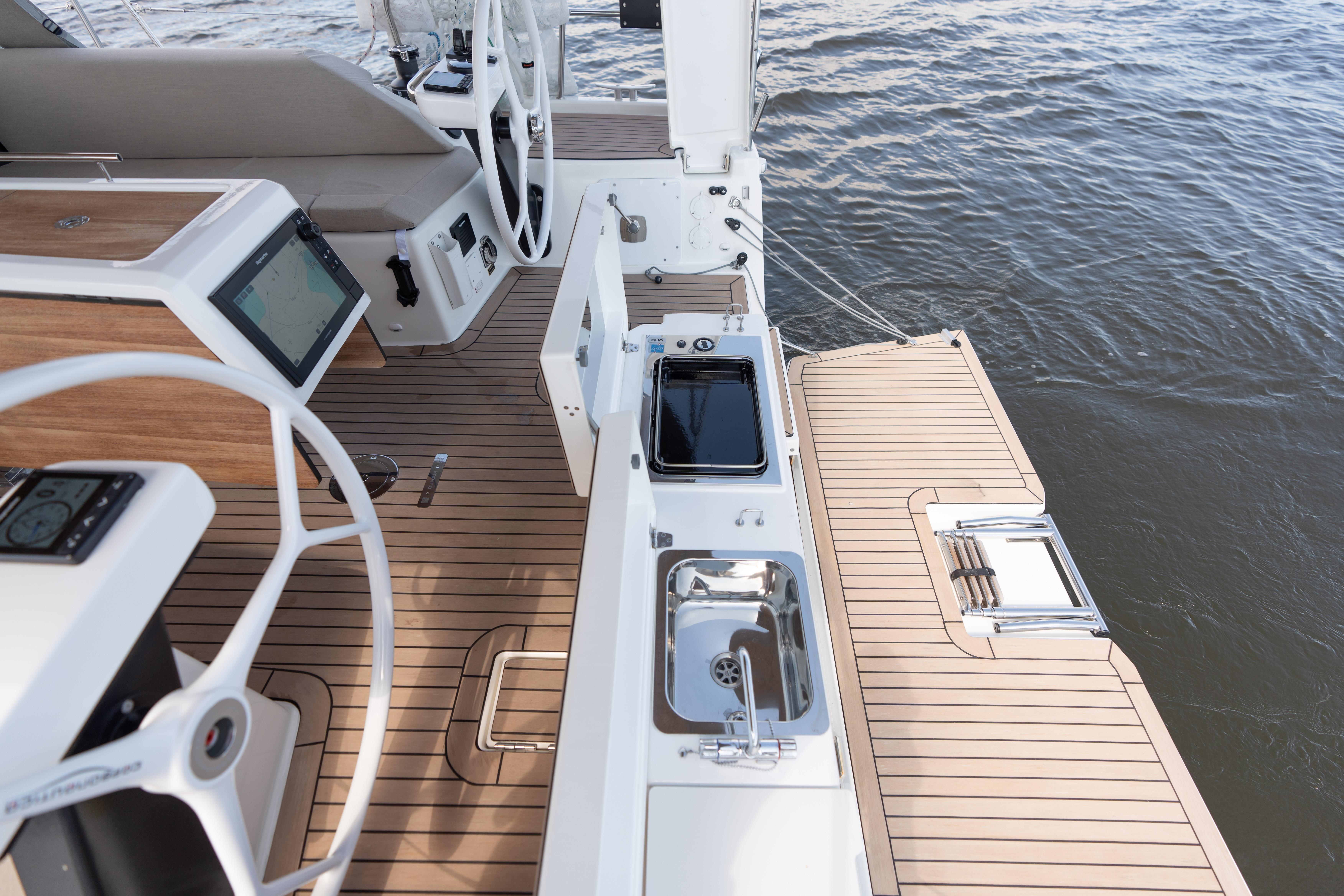- Flexiteek synthetic teak decks (cockpit & side decks) with custom canvas (bimini, dodger, connector, LED lighting)