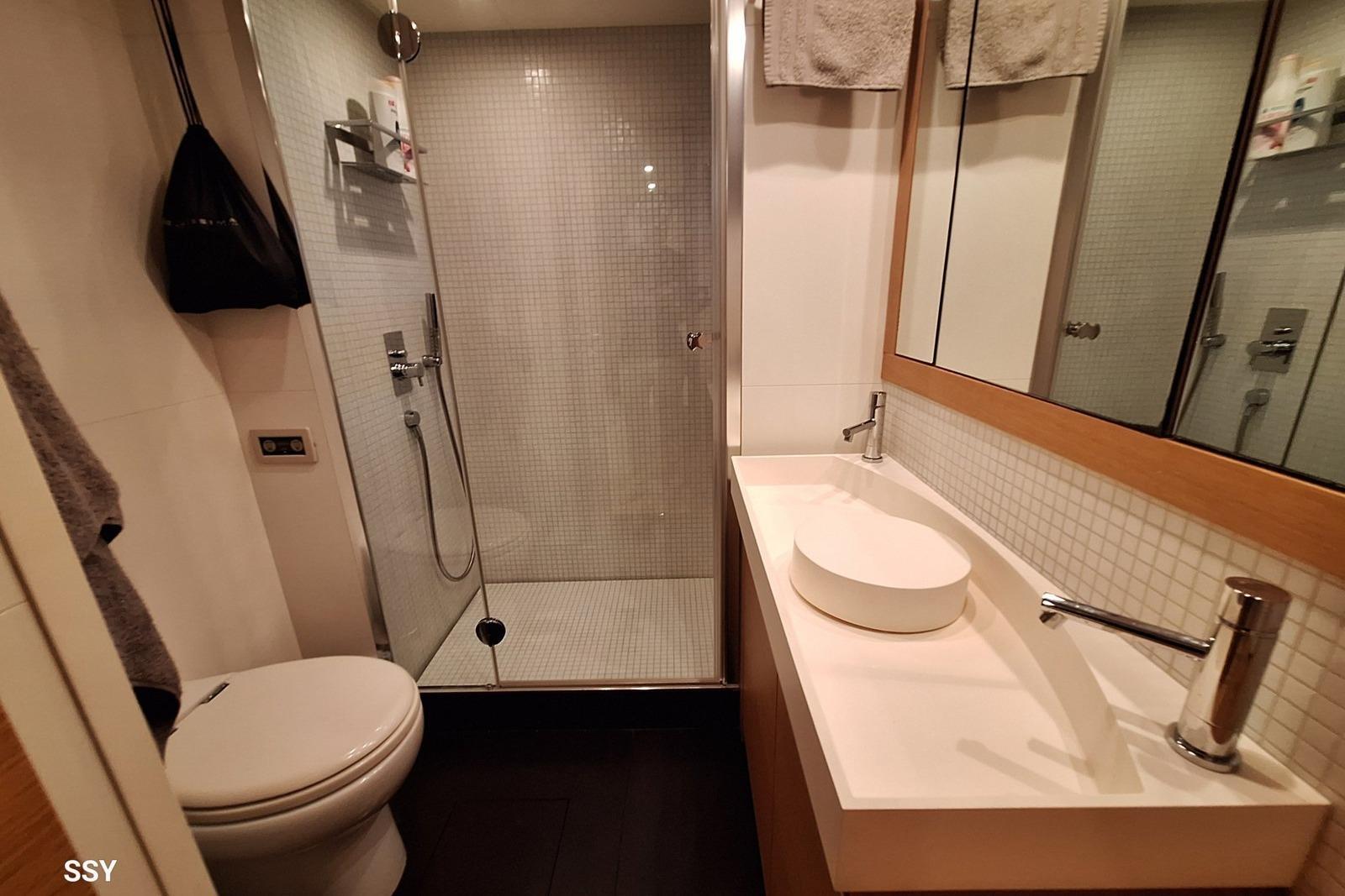 - Cockpit access with single bed and one bathroom (sink, shower, electrical toilet).