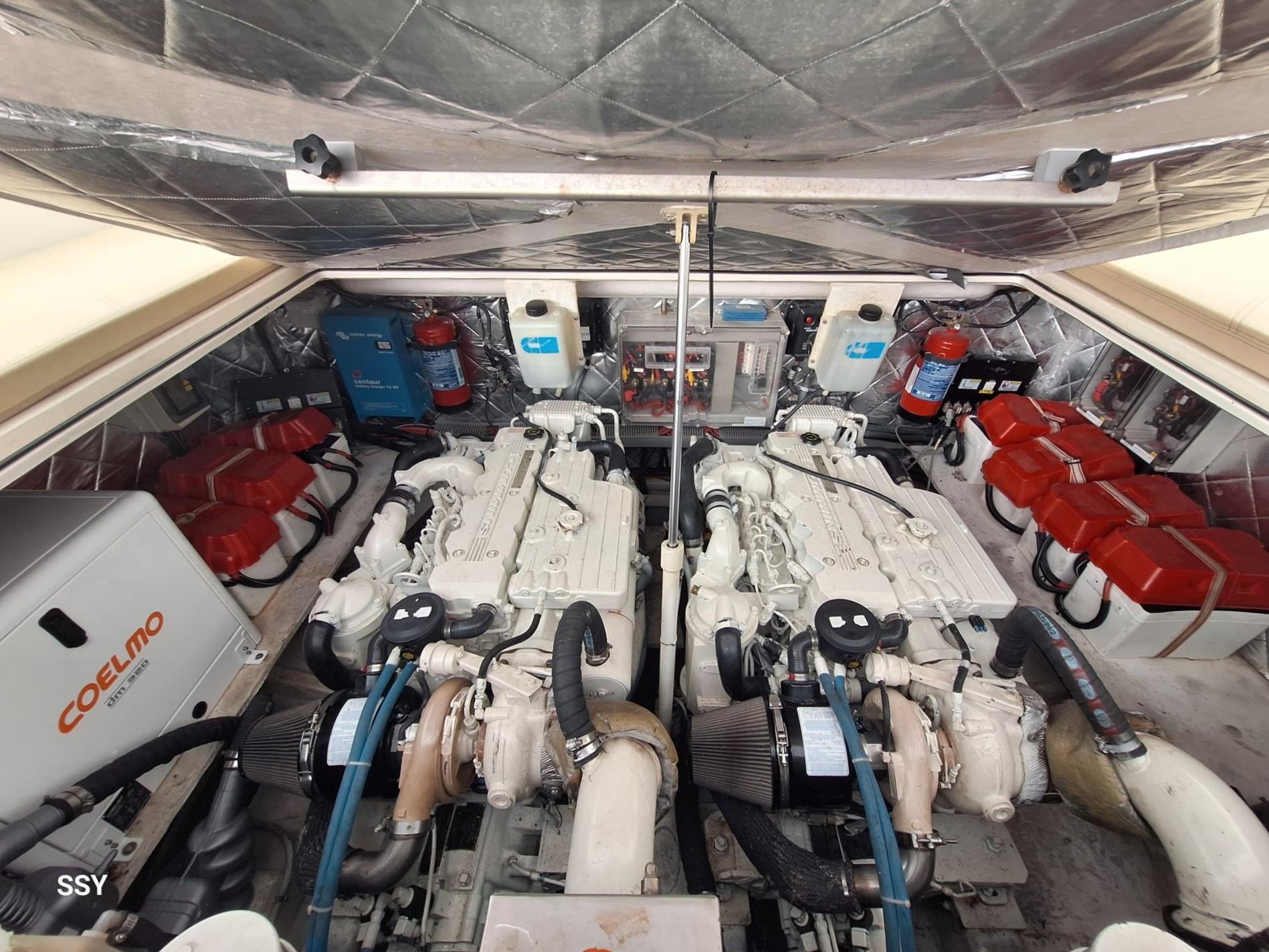 - Powered by twin CUMMINS QSB 5.9 engines, each delivering 480 hp, this boat boasts exceptional performance and reliability. With a total of 630 hours on the engines, it is ready for your next journey.