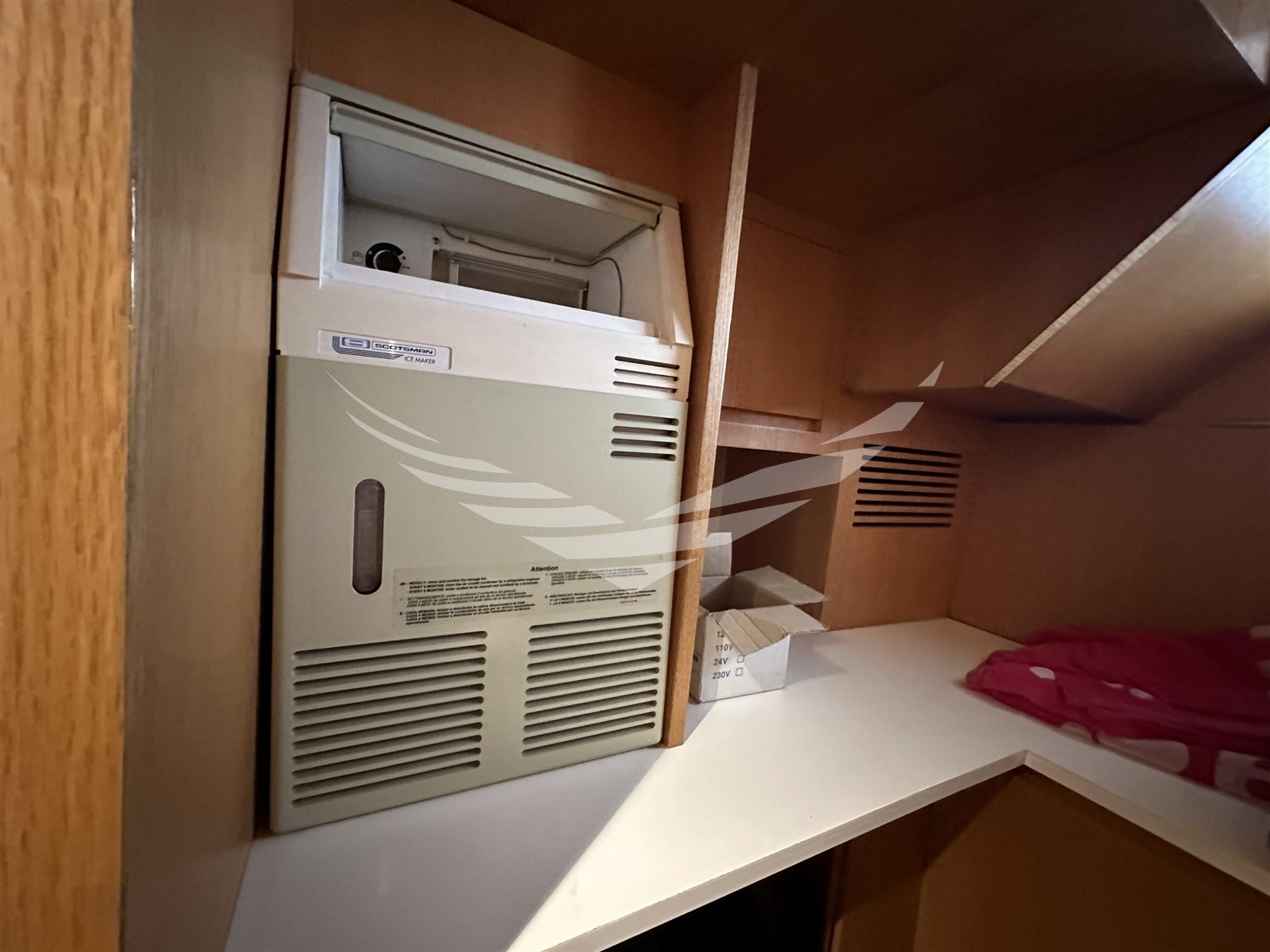 Boiler, Cassaforte, Clima reversibile, Collegamento internet (Antenna on the rollbar year 2022 up to 25nm), Dissalatore (Idromar 200 l/h - 16 working hours), Impianto acque nere, 2 Inverter (1x 800 w + 1x 1500 w Mastervolt), Pavimento interno in legno, Prese interne 12v, Prese interne 220v, Serbatoio Acque Nere, Telecamera, Telefono Interno.