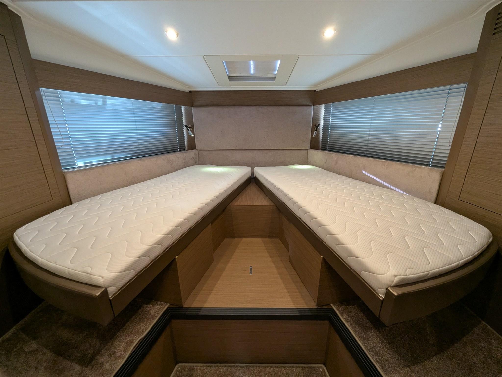 Beneteau GT46 nieuw aangekomen. Deze 2019 Gran Turismo versie met twee hutten in onberispelijke staat is nu verkrijgbaar bij Marivent Yacths, specialist in unieke jachten. Een bijna volledig uitgeruste motorboot met weinig motoruren en zeer goed onderhouden. Elektrisch hardtop dak en zijruiten in kuip. Draaibaar systeem met glazen deur dat in staat is om de cockpitsalon naar de zee te openen in combinatie met een achterin converteerbaar zonnedek. Een must see voor elke GT46 liefhebber. Neem contact met ons op voor meer informatie en aanbiedingen.
