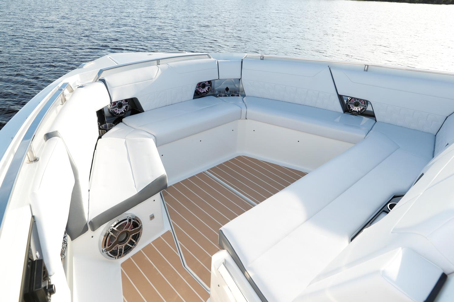 From the enclosed coupe-top salon to the aft lounge bar, the 500 SSC is a true evolution and culmination of the Formula SmartZone™ concept. From the full bow lounge forward to the expansive extended swim platform aft, you will find air-conditioned comfort, entertainment and innovation. A full-width motorized glass salon bulkhead allows you to choose your degree of separation or shared fun with the aft cockpit lounges and bar areas.