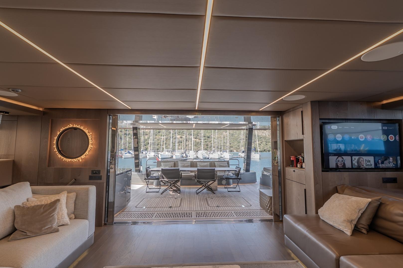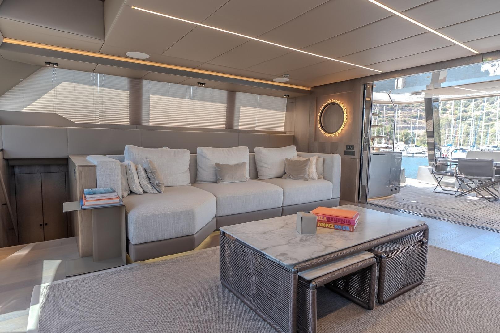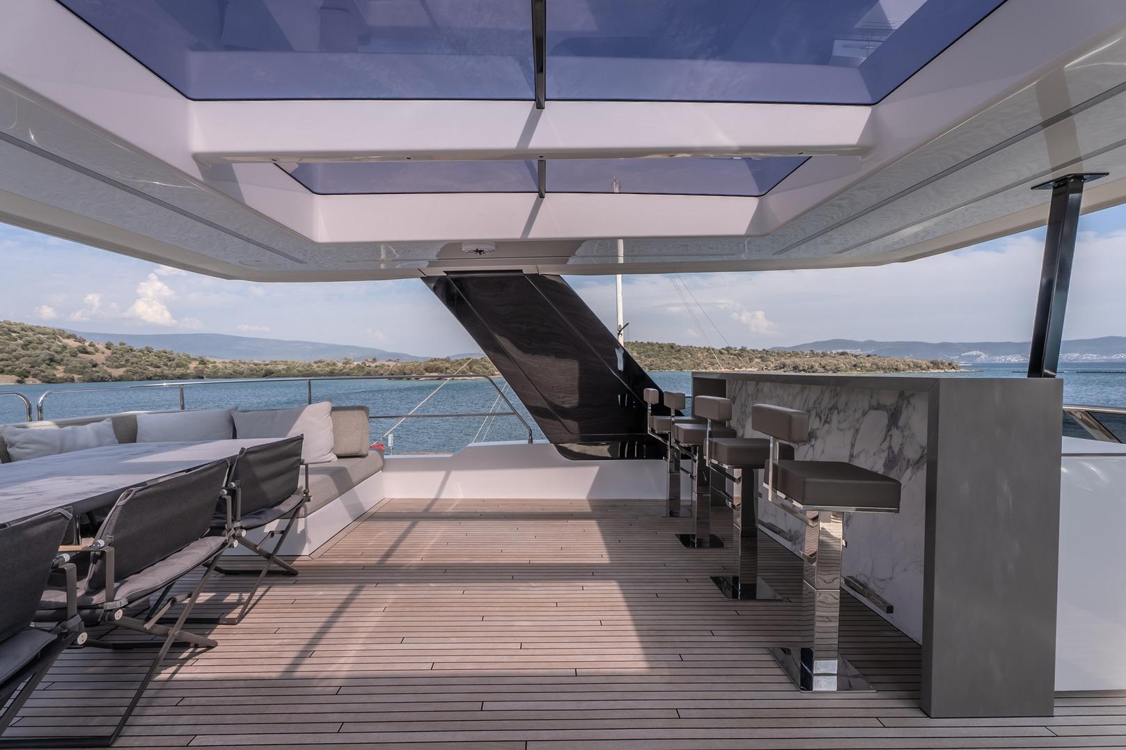 Up/down table on the front terrace and on flybridge