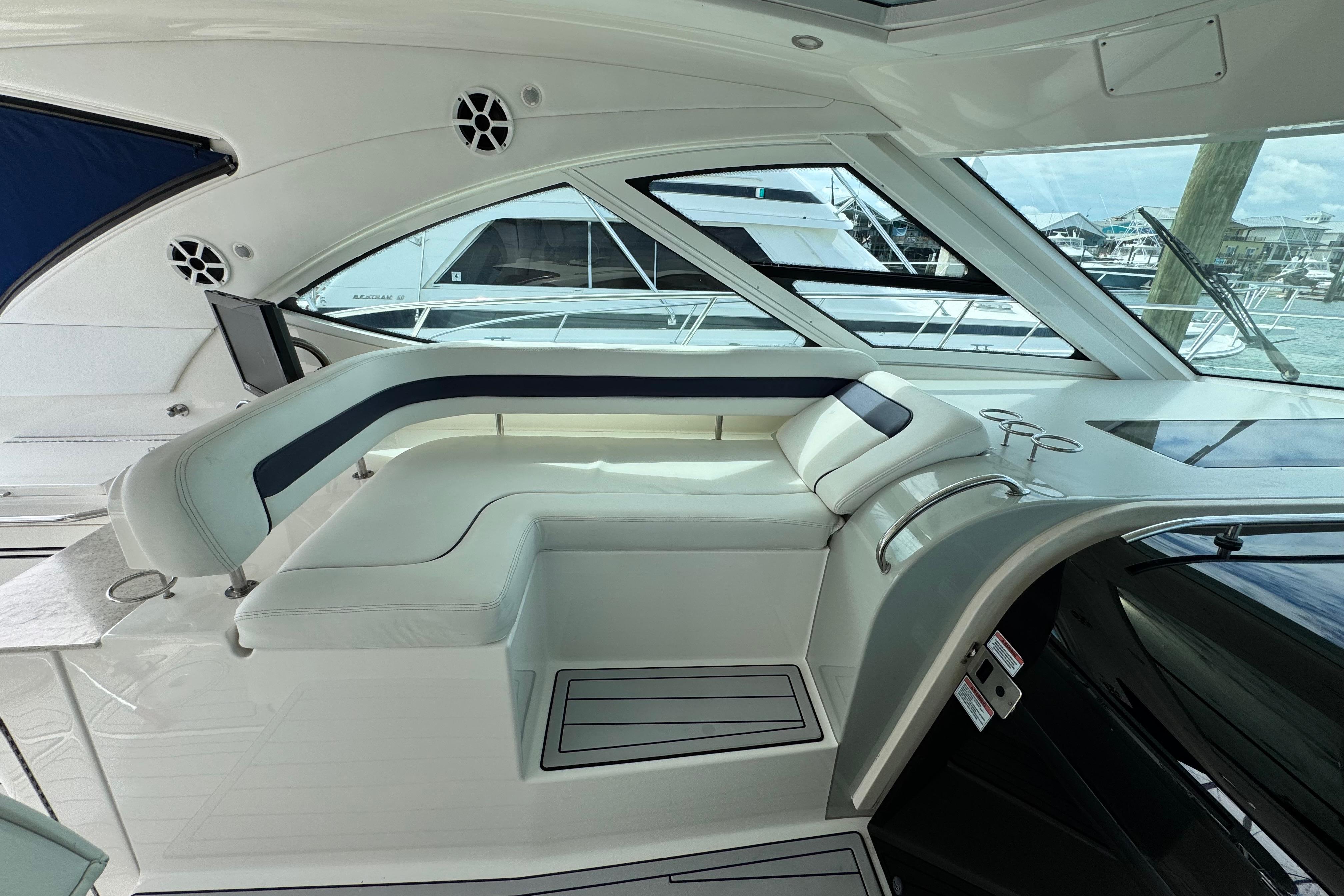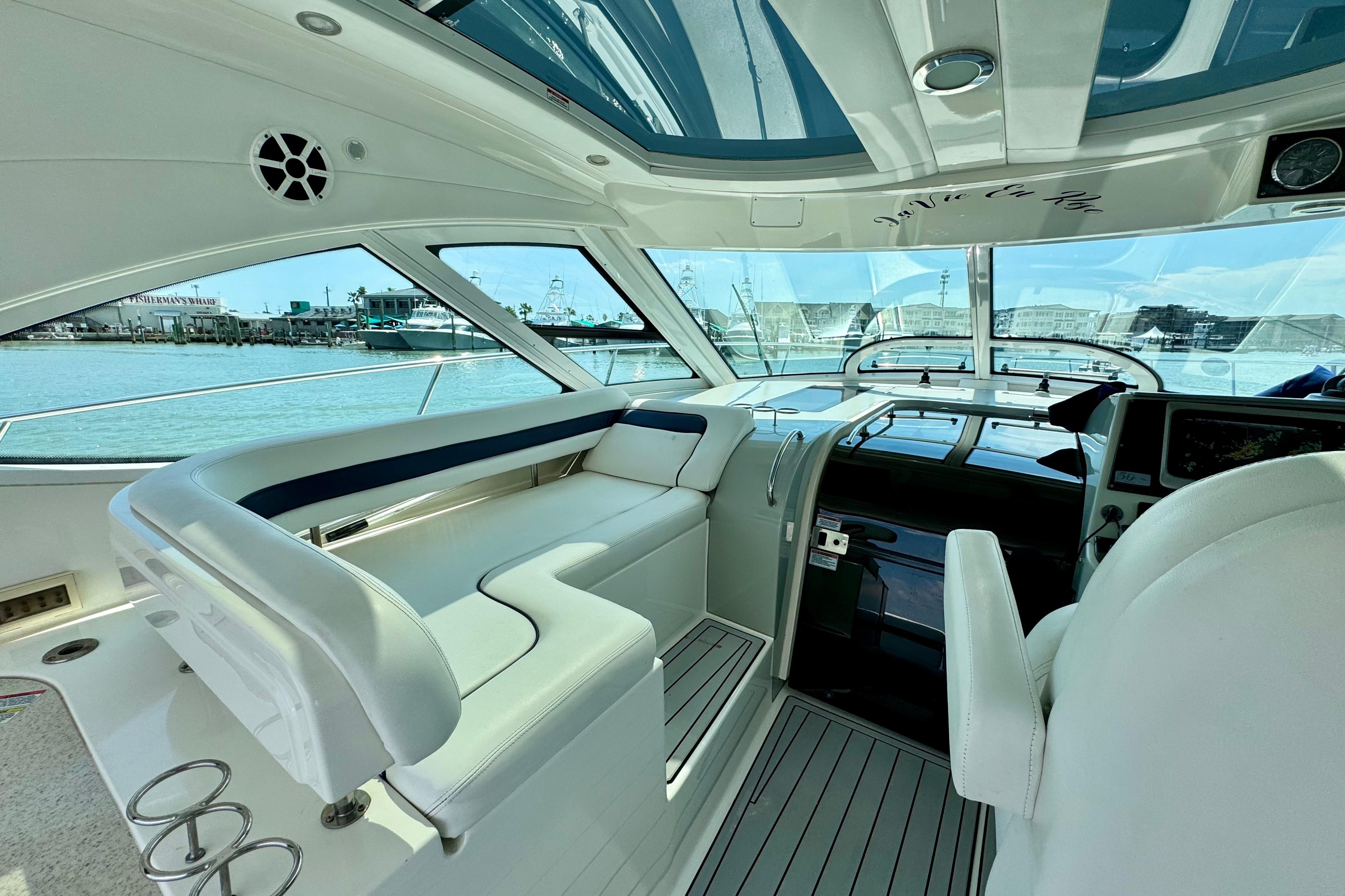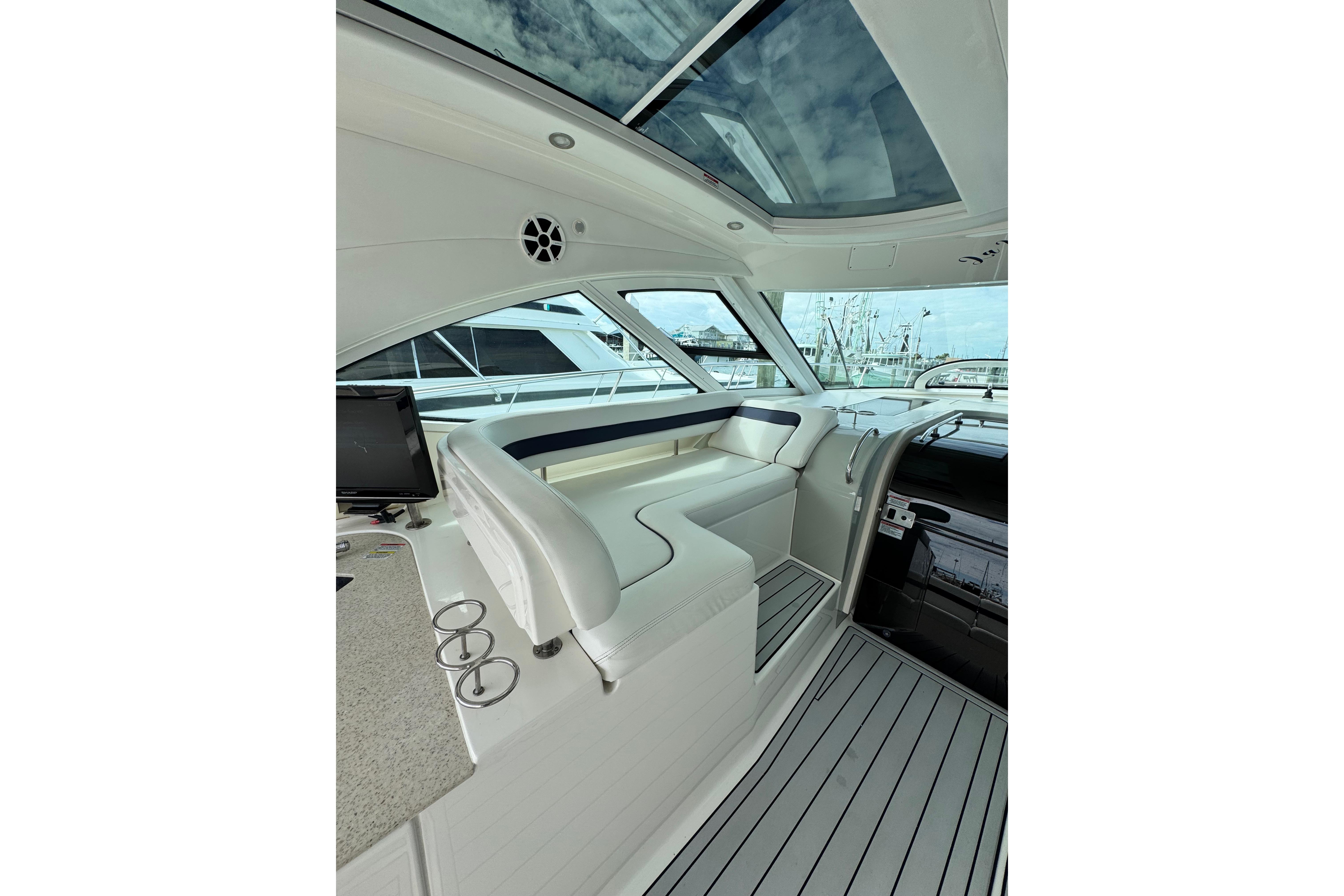 "The 470 Sundancer is an instant classic, packed stem to stern with winning design features and innovations, including standard Zeus® pod drives with an intuitive helm joystick for stress-free docking. Plus, there’s an enclosed bridge with two independently retractable sunroofs, offering the ultimate in weather protection and climate control. This luxurious Sundancer will change the way its owners boat forever, guaranteed."