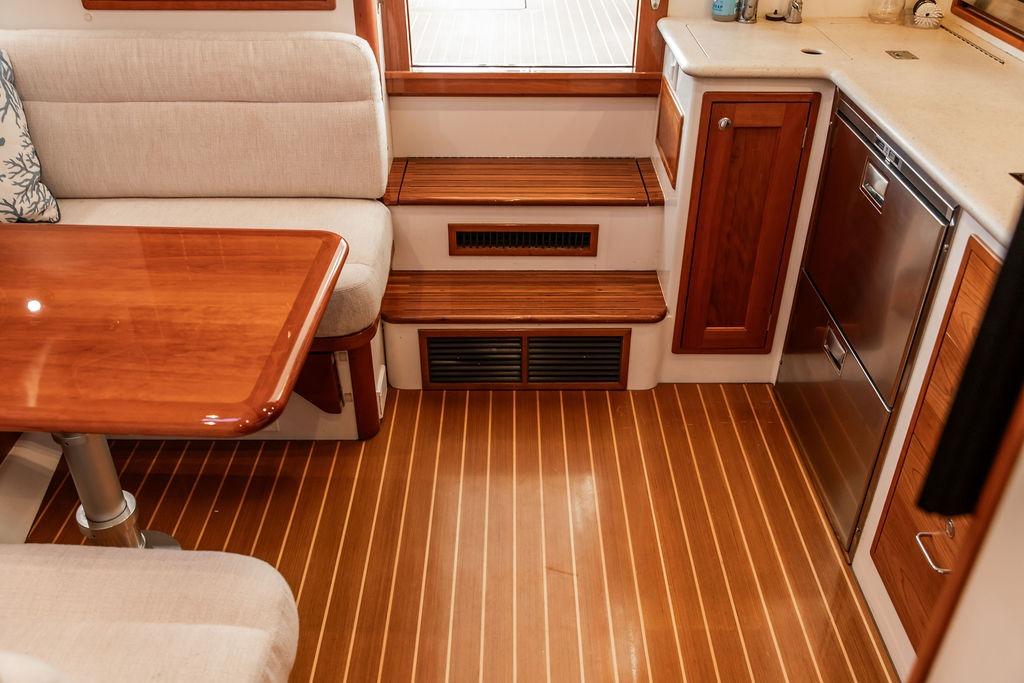 - Pilothouse settee and moveable cockpit chairs with HVAC into pilothouse