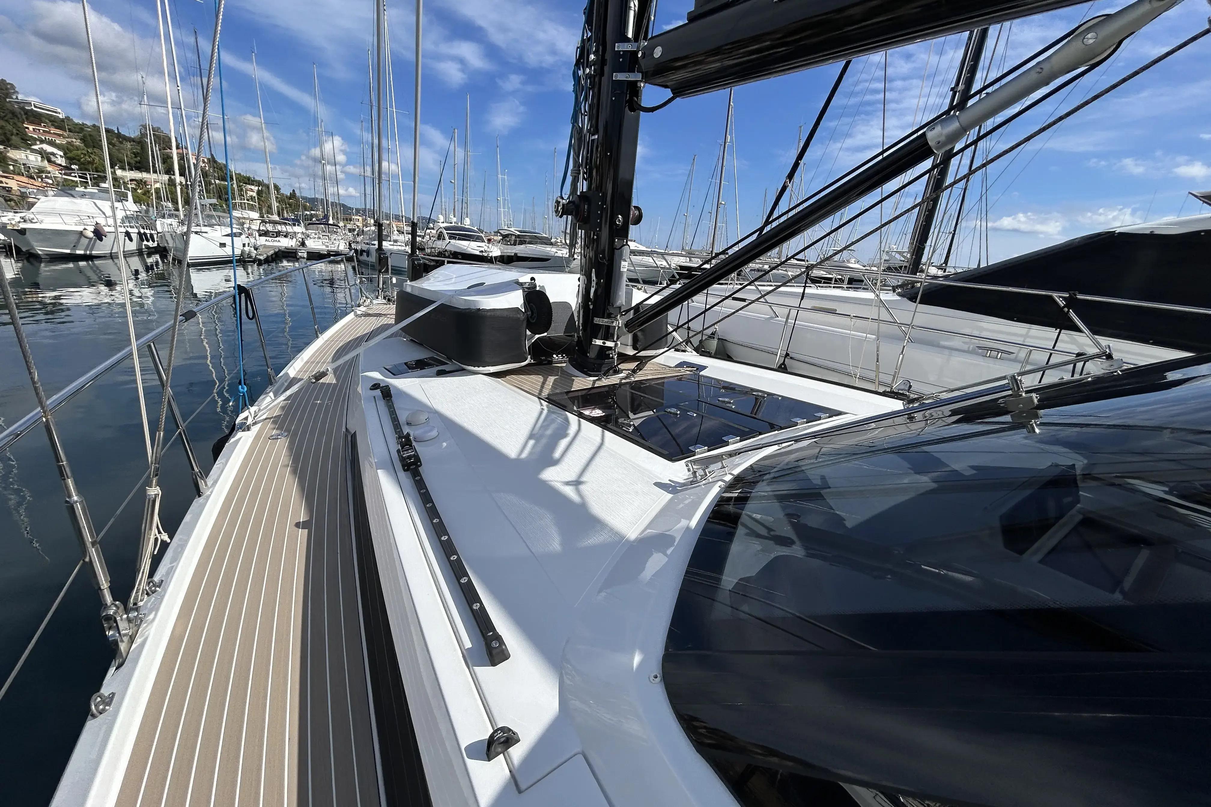 - Trinquette autovireuse (24 m²) avec enrouleur électrique Profurl, drisse, écoutes et accastillage complet (rails, chariots, poulies, étarqueur)