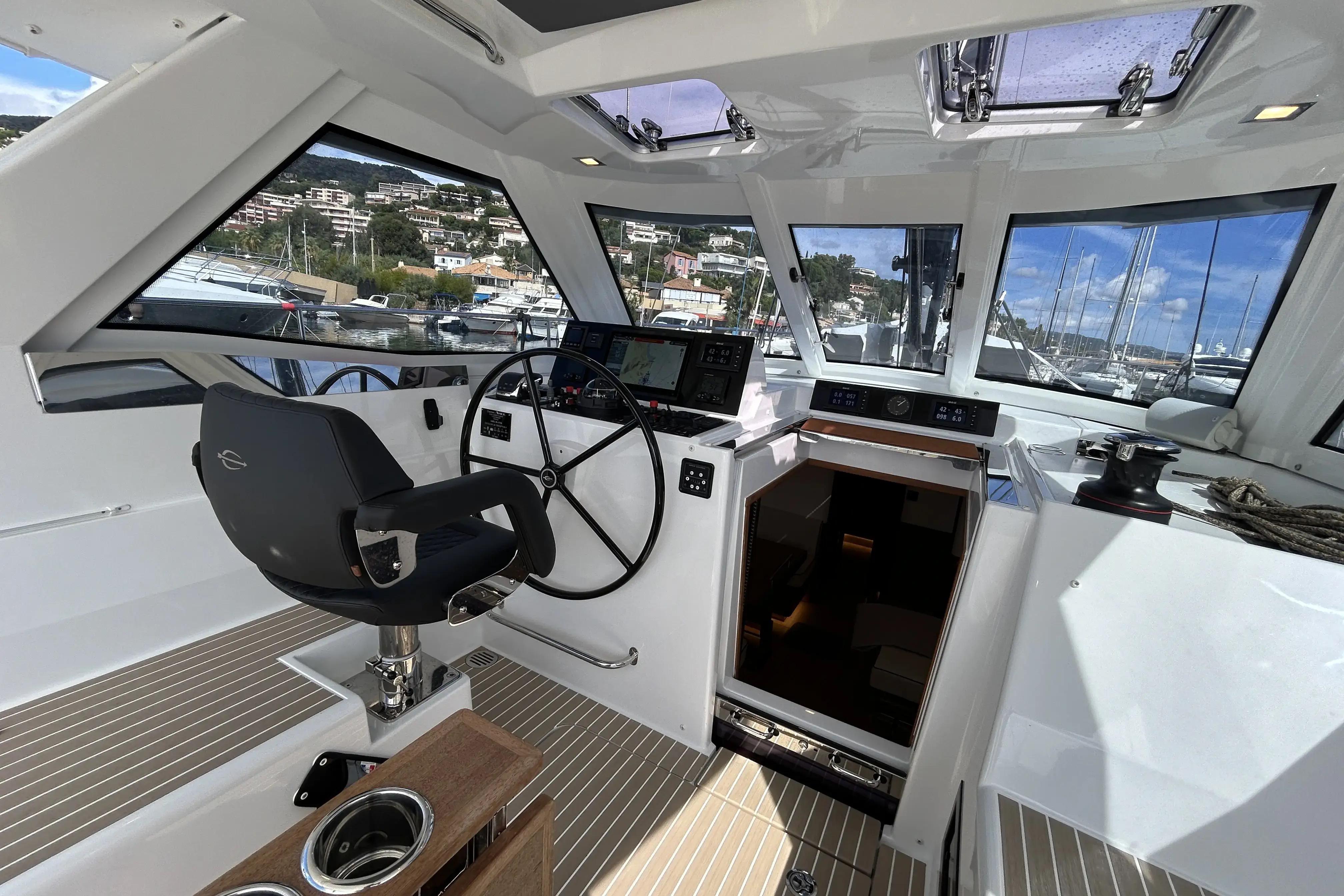 - Pack électronique : radar-traceur Furuno Navnet TZT3 avec 1 écran tactile 16″ (cockpit), 1 carte Wide, centrale de navigation B&G Hydra 5000 comprenant 2 écrans GFD (1 dans le cockpit et 1 à l’intérieur) et 1 écran analogique dans le cockpit, AIS FA70 et HUB 101. Prix après déduction de la centrale standard
