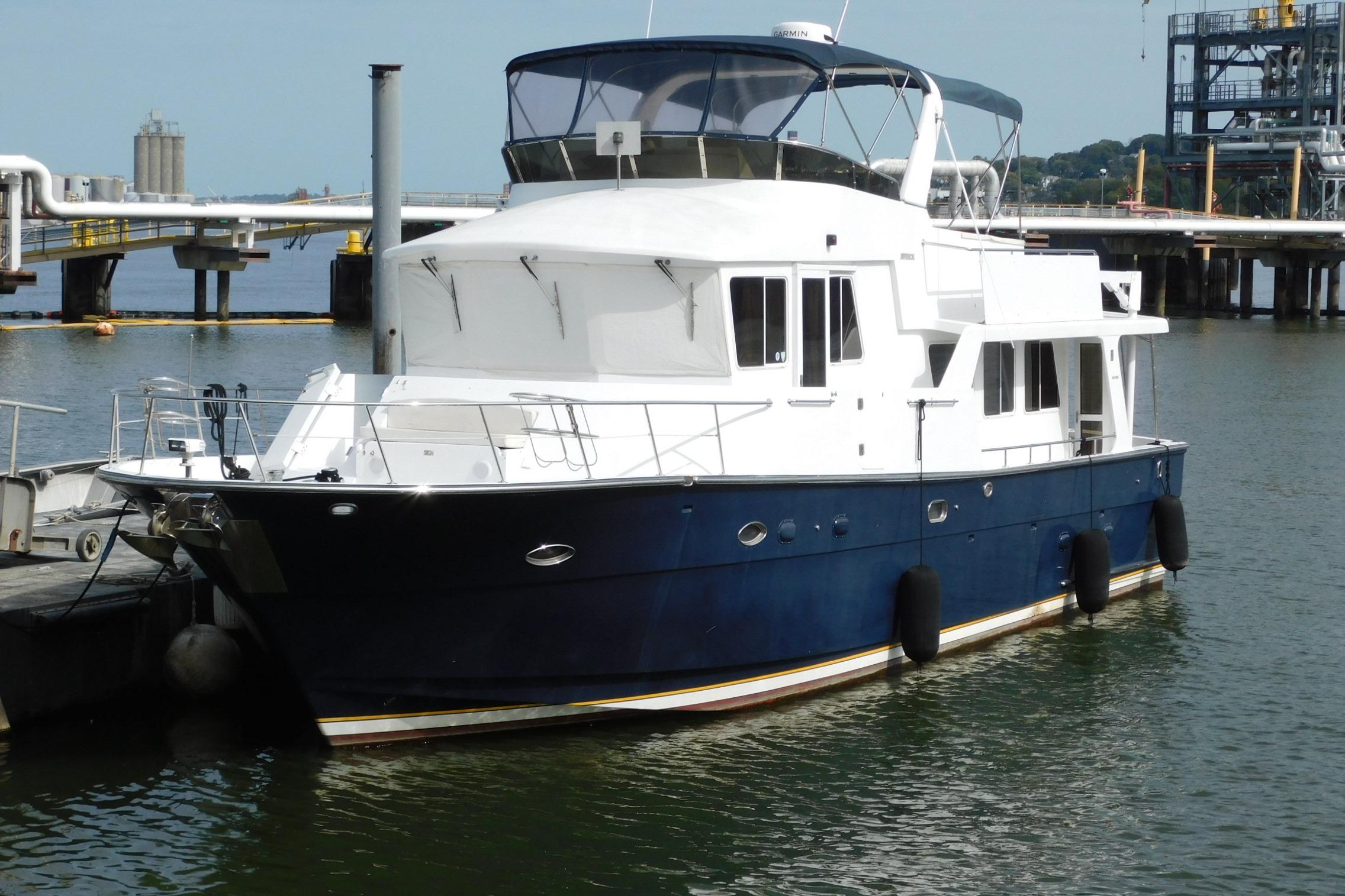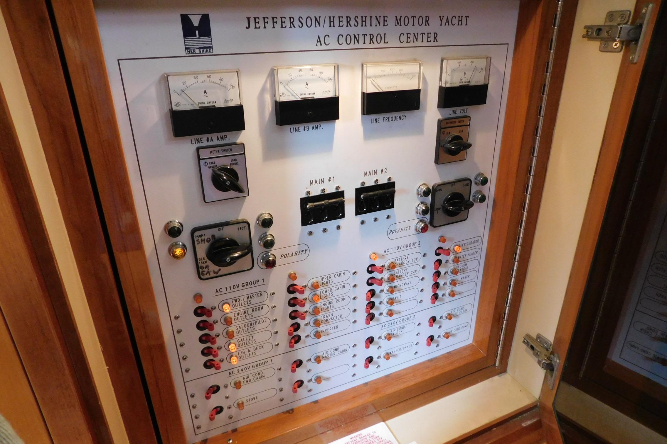 The 57 Jefferson is one of the great Pilothouse designs from Jefferson and Hershine and offers tremendous benefits, including a delightful, comfortable geometry offering three different dining areas, three staterooms, one of which being a sumptuous master cabin with centerline queen bed and en suite bath with shower, a large flying bridge with large bimini and a dinghy cradle with crane to launch a dinghy. Her large Main Salon features seating on both sides of the yacht, easy access to the cockpit, super comfortable. It is also open to the galley further to the point of her large interior volume.