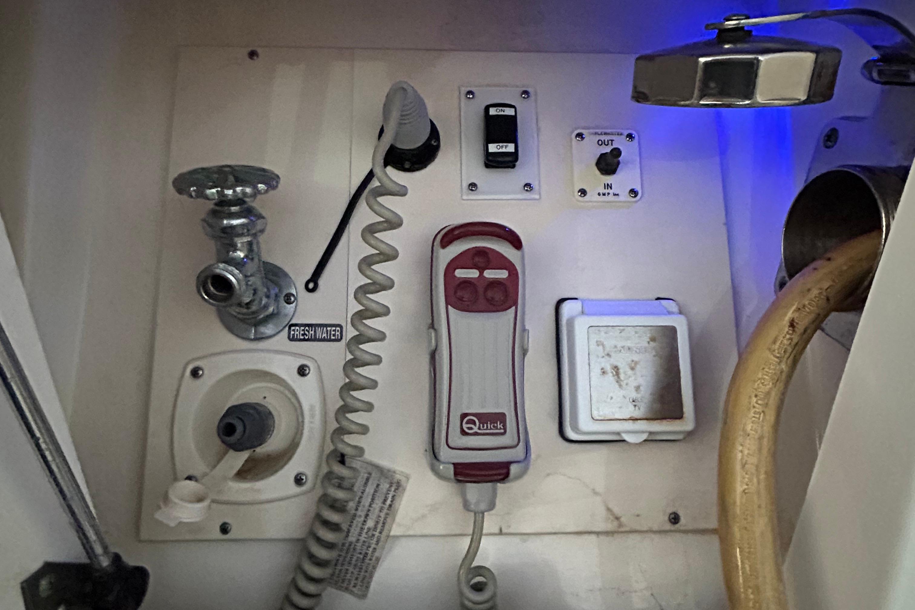 Cockpit: Aft deck seating with grill, cooler and hydraulic swim platform with outdoor shower for rinsing off.