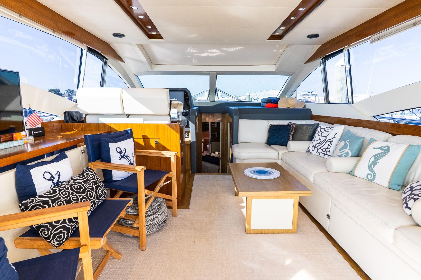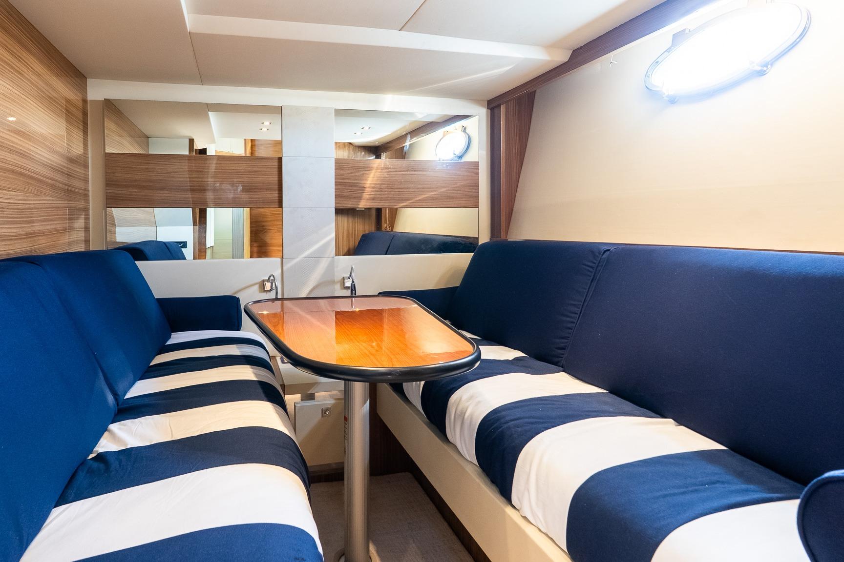 - Added a center table and day bed cushions to the port side bedroom to creat the option of having a secondary day Solon and still remain a bedroom with two twin beds for night time sleeping accommodations. “Awesome added feature for families with children”