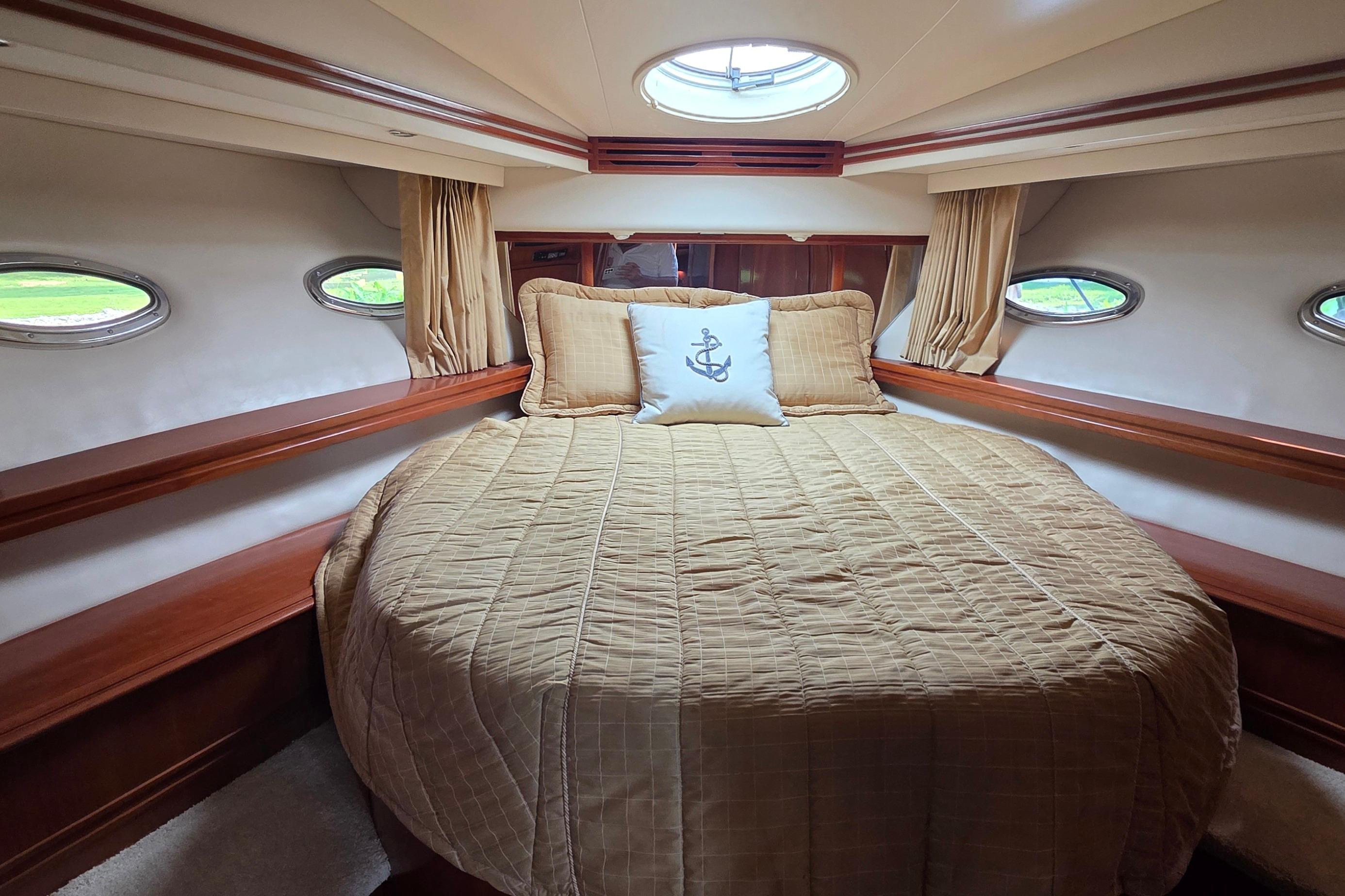 This Carver 56 Voyager features a full-beam master stateroom with a private en-suite head that includes a separate shower and a tub, offering a large private retreat. A comfortable VIP stateroom and a guest stateroom with twin bunks provide additional accommodations for family and friends. A convenient washer/dryer unit is also onboard.