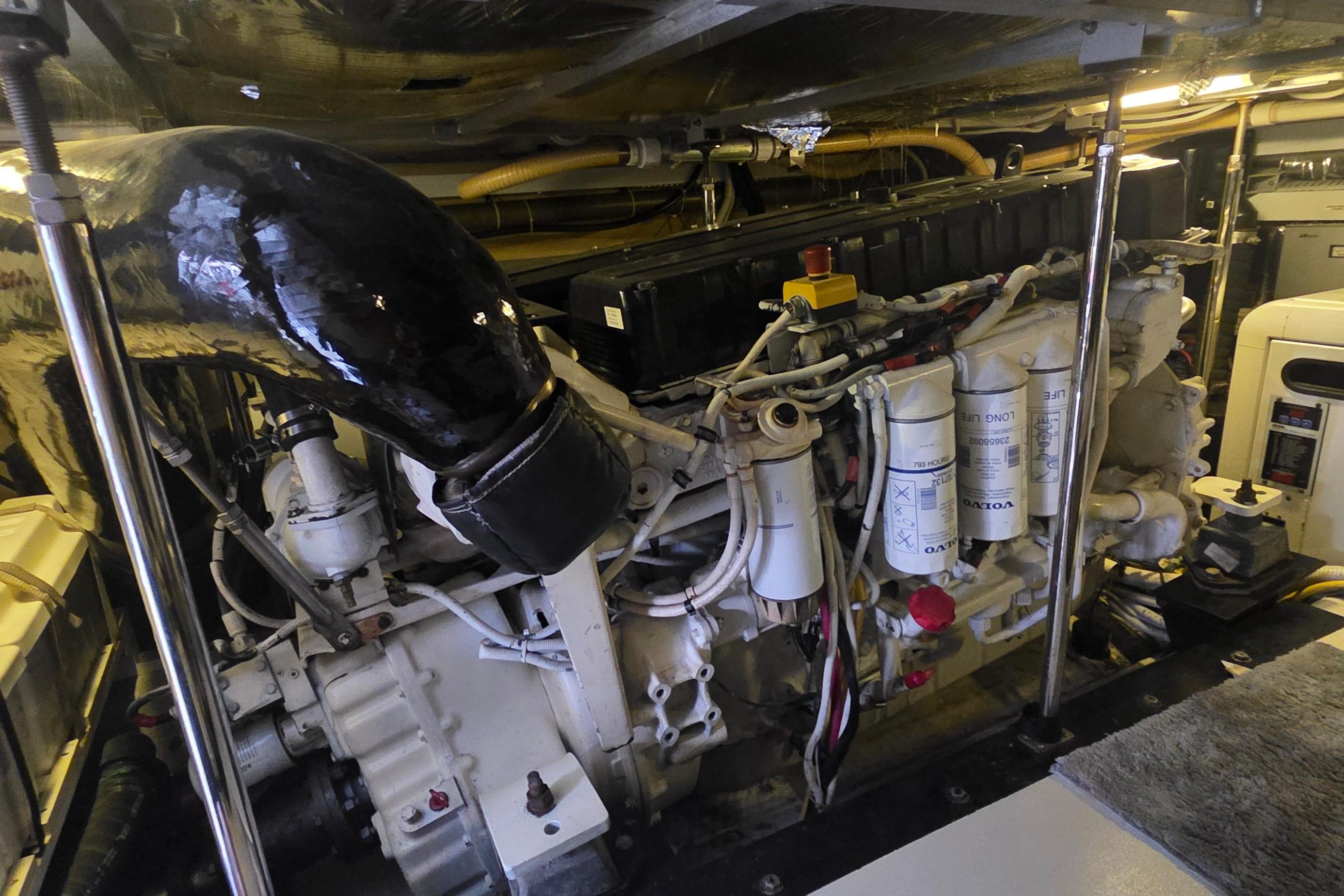 "Mardi Gras" is powered by reliable twin low hour Volvo Penta D12 675 diesel engines, known for their robust performance. For easy handling and precise control, both a bow thruster and stern thruster are installed, making docking maneuvers straightforward and stress-free.