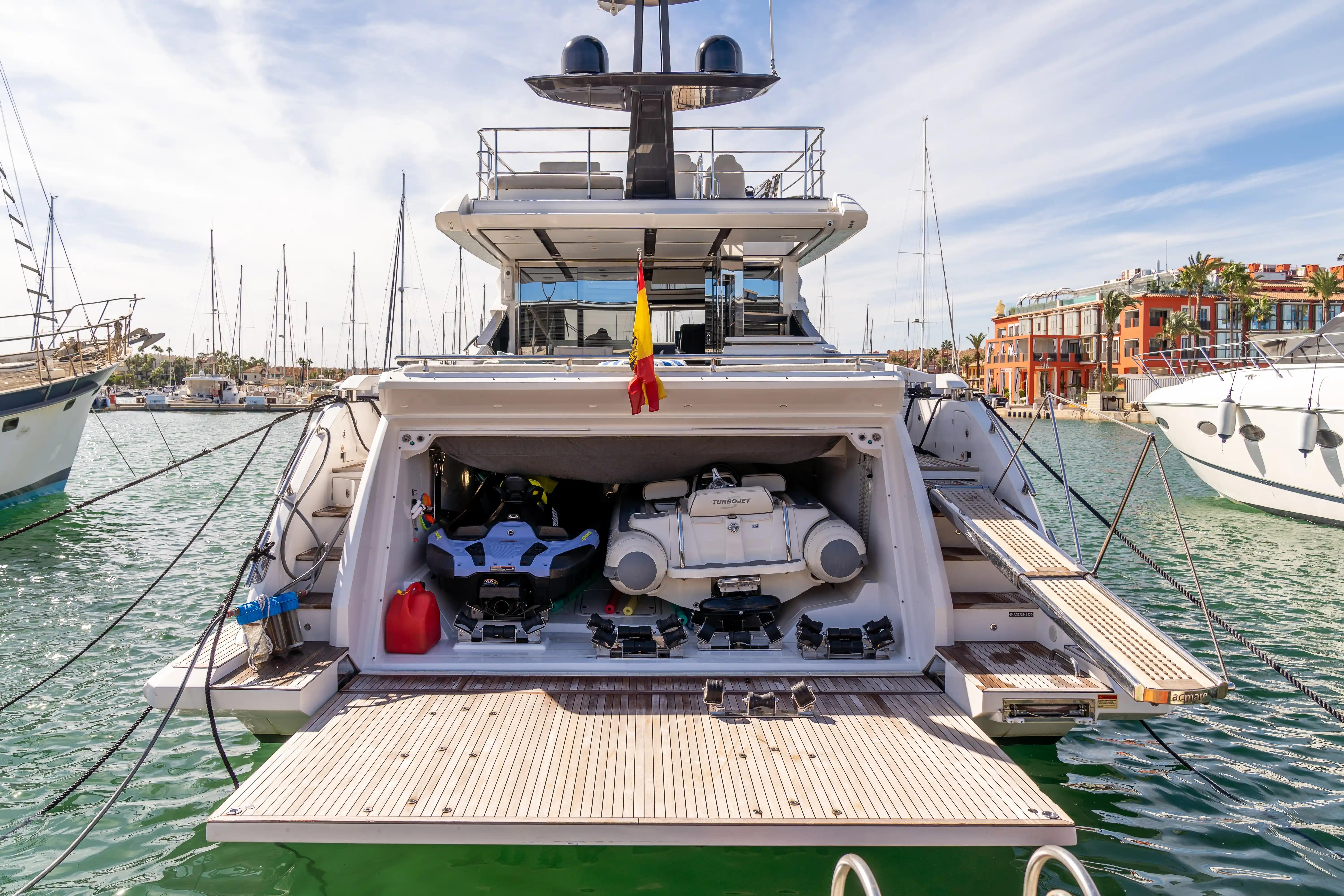 El Azimut S7 es un espectacular yate deportivo que ofrece una combinación perfecta de diseño elegante, ingeniería ecológica y rendimiento excepcional. Un yate deportivo de 21,68 metros es uno de los más avanzados de su categoría y se une a la creciente oferta de yates de bajas emisiones del astillero. Su afilado diseño exterior, obra de Alberto Mancini, se define por un arco de acristalamiento sin juntas que recorre la superestructura, garantizando que sus generosos interiores estén llenos de tanta luz natural como sea posible. Yachtique diseñó sus cálidos interiores, y la experiencia de la compañía es evidente en cada aspecto del diseño del yate.