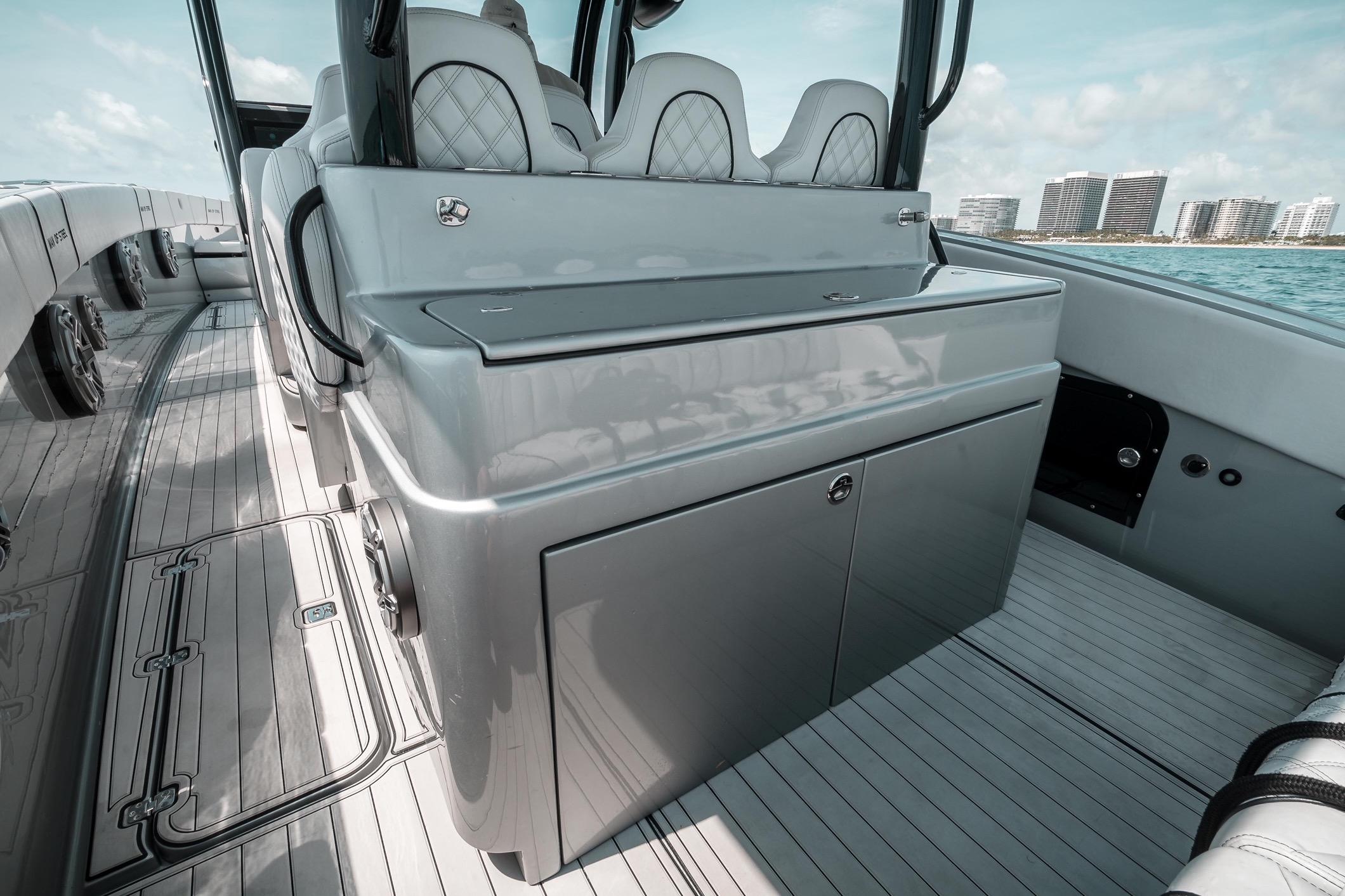 The 43′ Open can be designed any way you choose. Paint schemes, upholstery options, custom flooring, sunroof and a console full of screens are just some of the design options you can select. Interior cabin options, coolers, hidden rope and fender storage, extra fuel and dive tank storage are just a few ideas to get the mind turning on how to build the perfect boat for you.