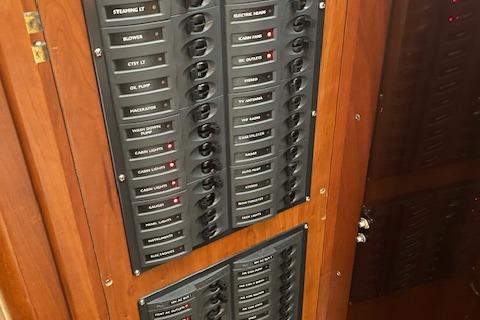 Pumps (air con, fresh water, accumulator, sump, fridge forward bilge, aft bilge system, wash down, oil change pump)