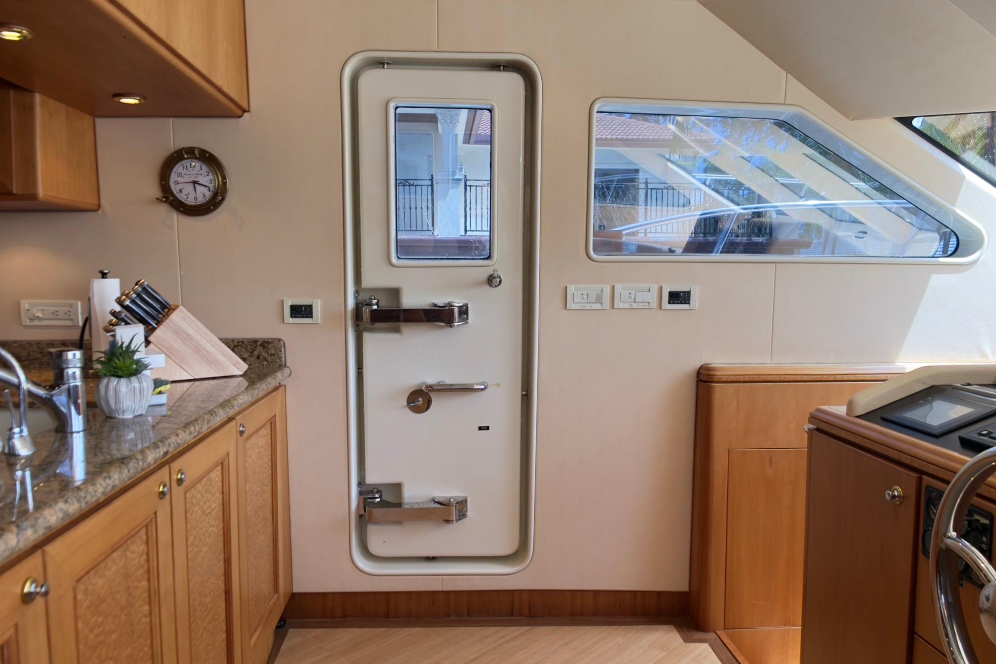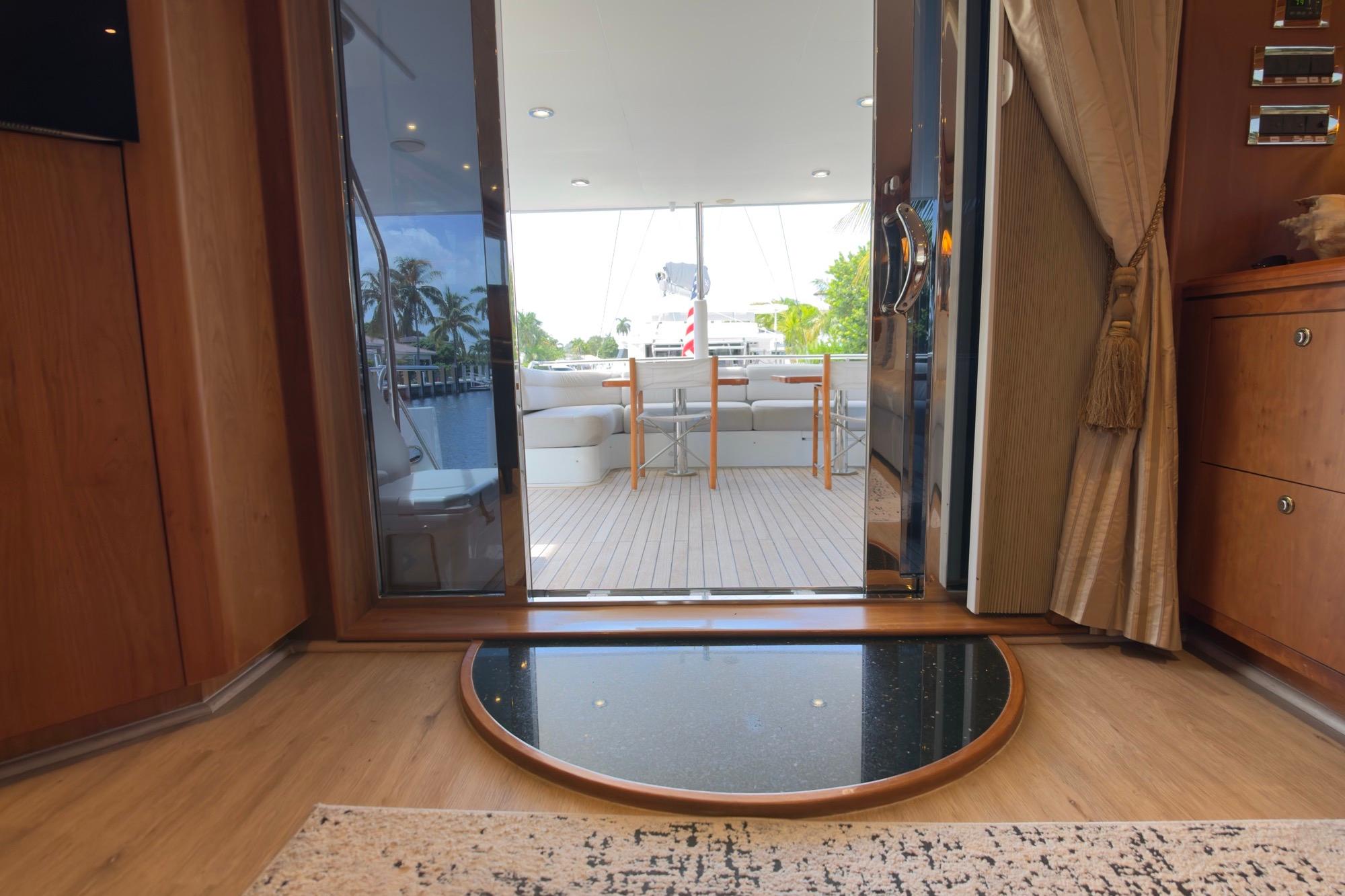 - Sliding door over aft deck stair access
