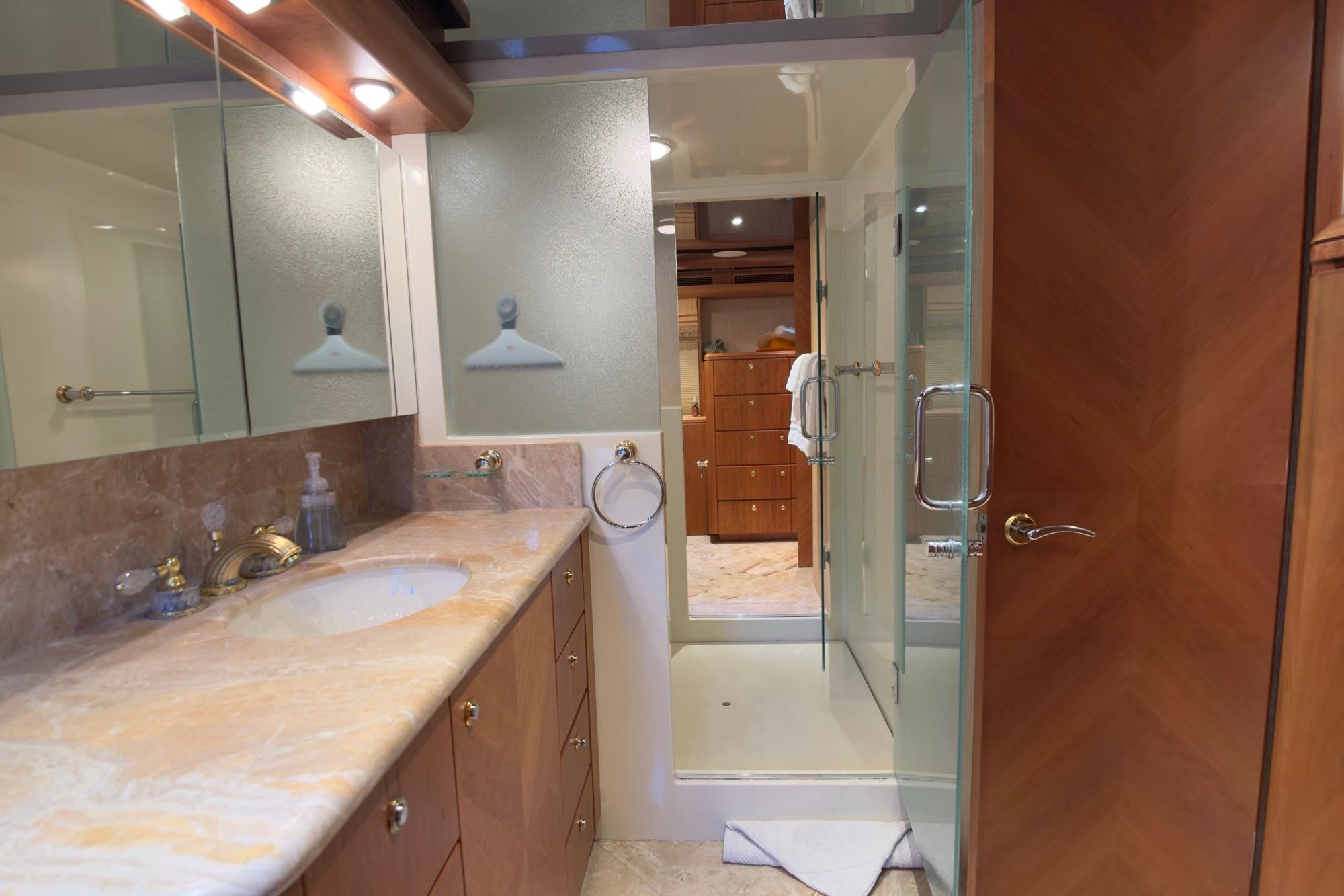 The salon is open and flexible, inviting personal touches with free-standing furniture. A comprehensive audio/visual upgrade in 2017 added current Sony, Bose, and other components. Significant factory upgrades to the interior décor bring beautiful granite and marble throughout that immediately catch the eye.