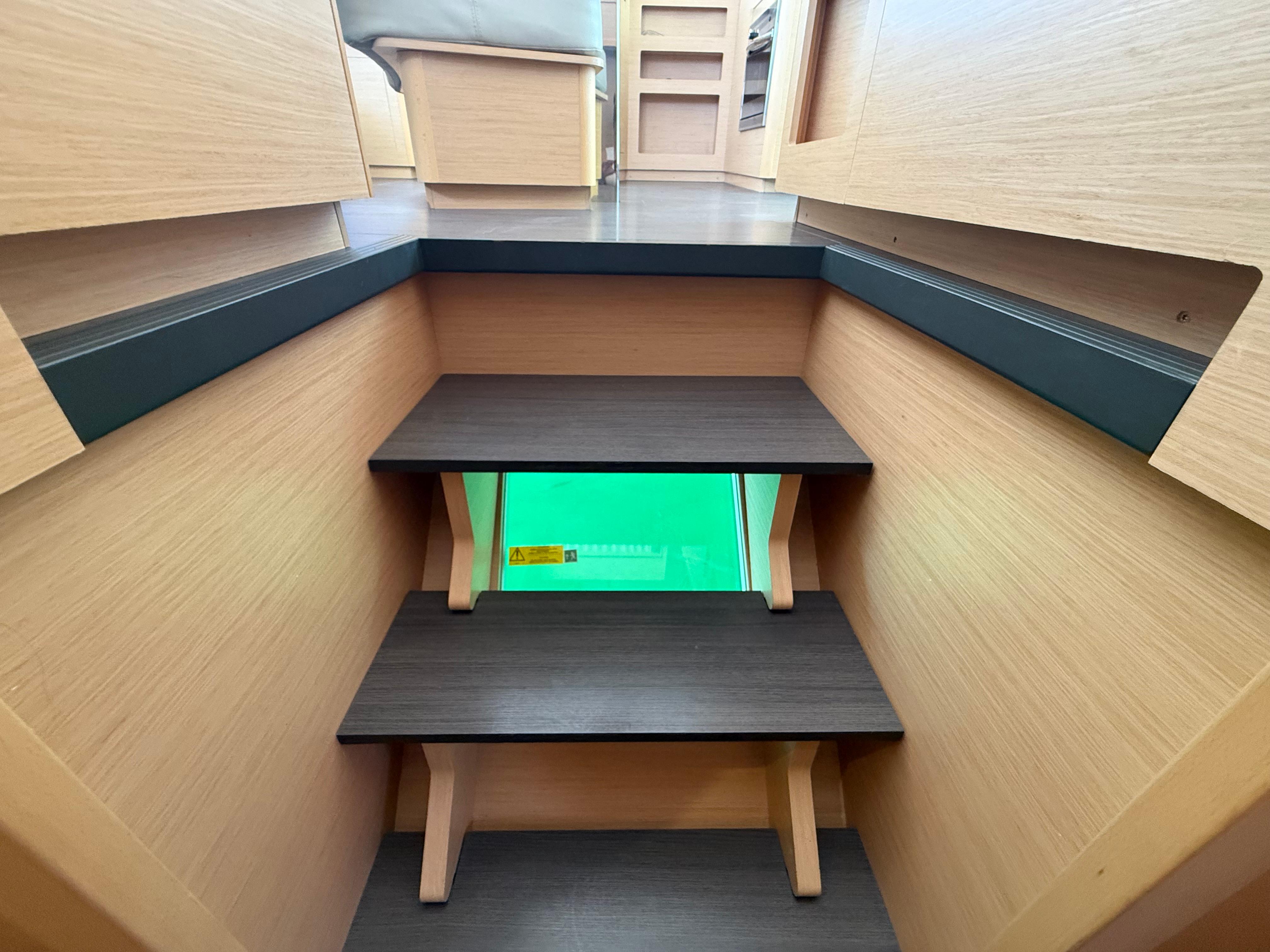 THE FREEDOM OF SPACE:Just two steps separate the swim platform and the cockpit. The ergonomic design guarantees space and fluid movement on board. Sheltered and well ventilated, the cockpit is an open invitation to relax.