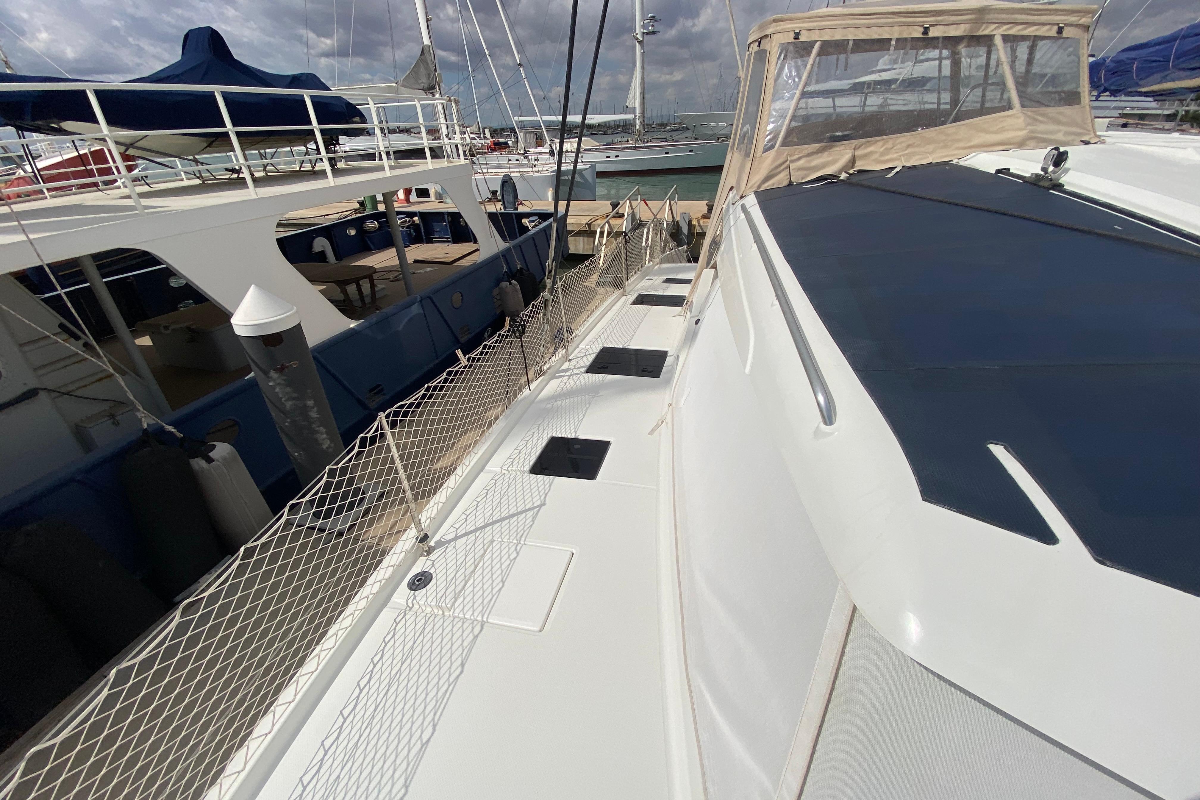 Introducing the Fountaine Pajot Catamaran Aura 51, a stunning vessel from 2024 that embodies elegance and performance. With an impressive overall length of 15.54 meters, this catamaran is crafted from durable fiberglass, ensuring both strength and stability on the water. Powered by two robust Yanmar inboard engines, each delivering 80 hp, this catamaran promises a reliable and efficient sailing experience. The bronze 3-blade propellers enhance maneuverability, making it a joy to navigate through various waters. Designed for comfort, the Aura 51 features six spacious cabins and five heads, providing ample accommodation for family and friends. The electric windlass adds convenience to anchoring, making your adventures even more enjoyable. Whether you're cruising along the coast or exploring distant shores, the Fountaine Pajot Catamaran Aura 51 is the perfect blend of luxury and functionality, ready to create unforgettable memories on the water.