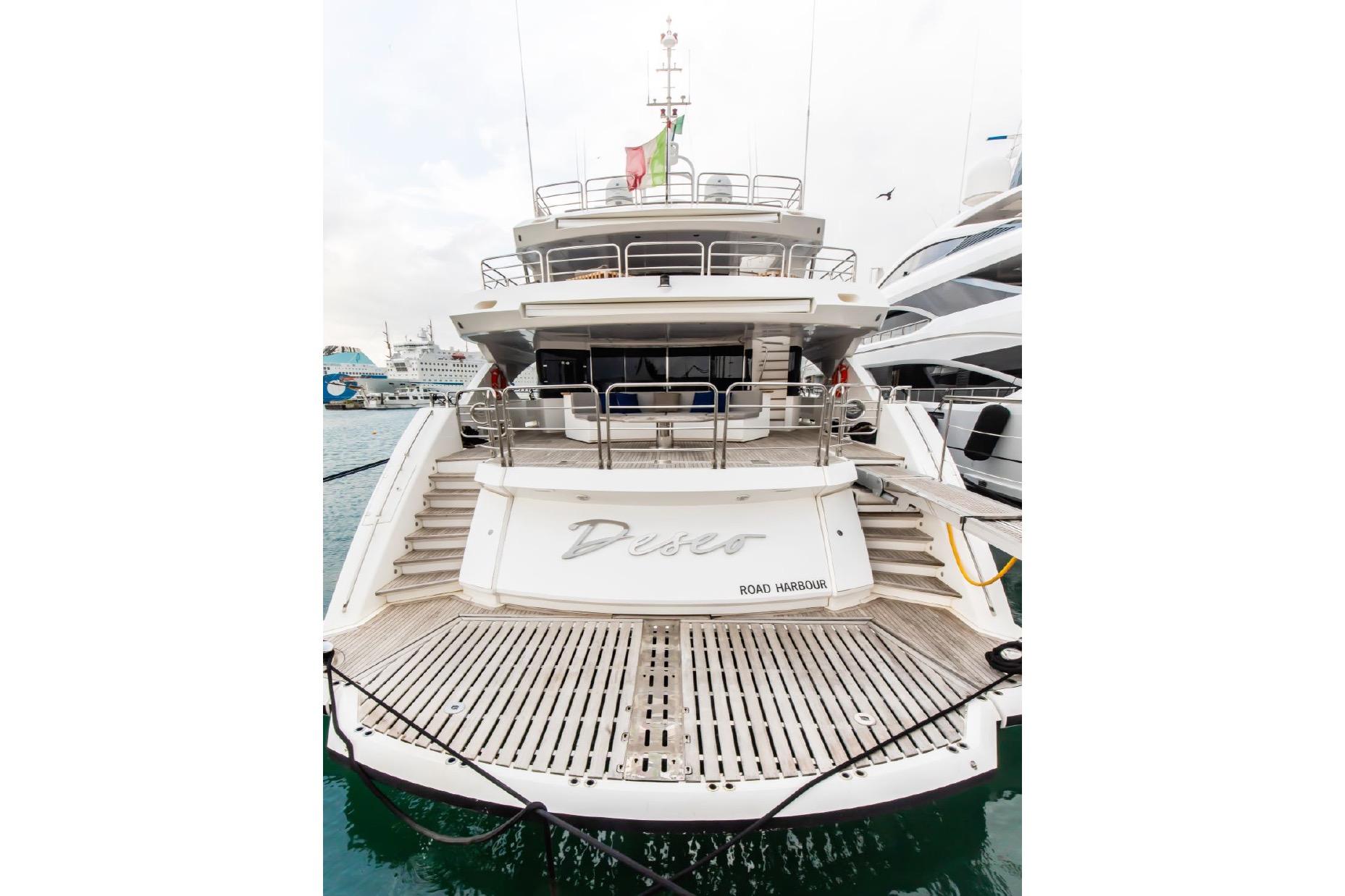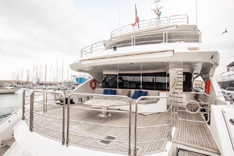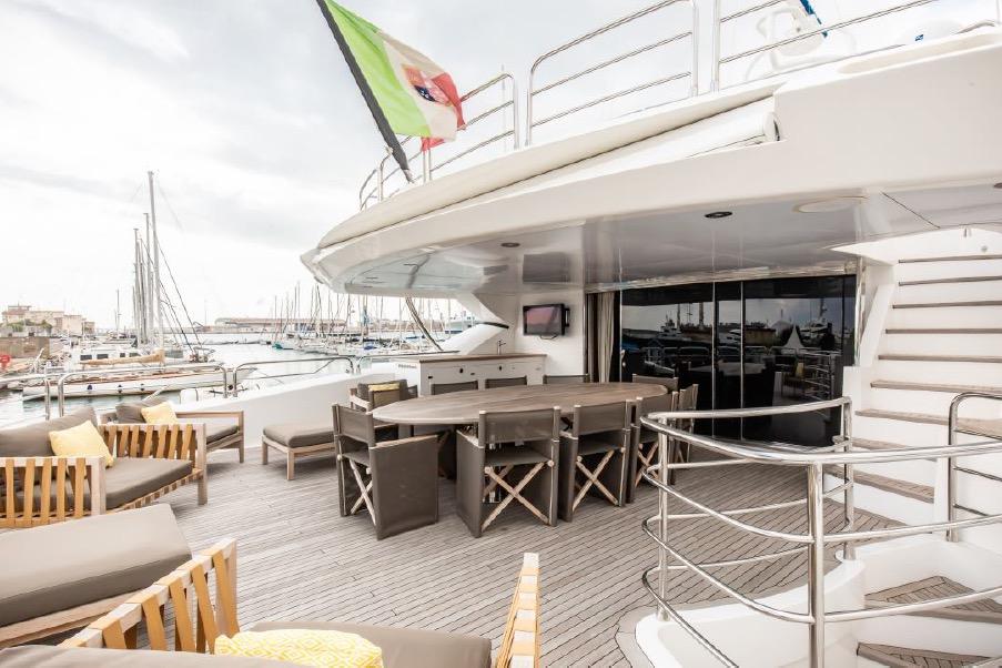 Electric blinds & day blinds for main deck dining, upper deck saloon and all cabins (excluding crew) plus electric curtains in the saloon (stern only) and Master stateroom Enlarged foredeck arrangement with seating and dining table