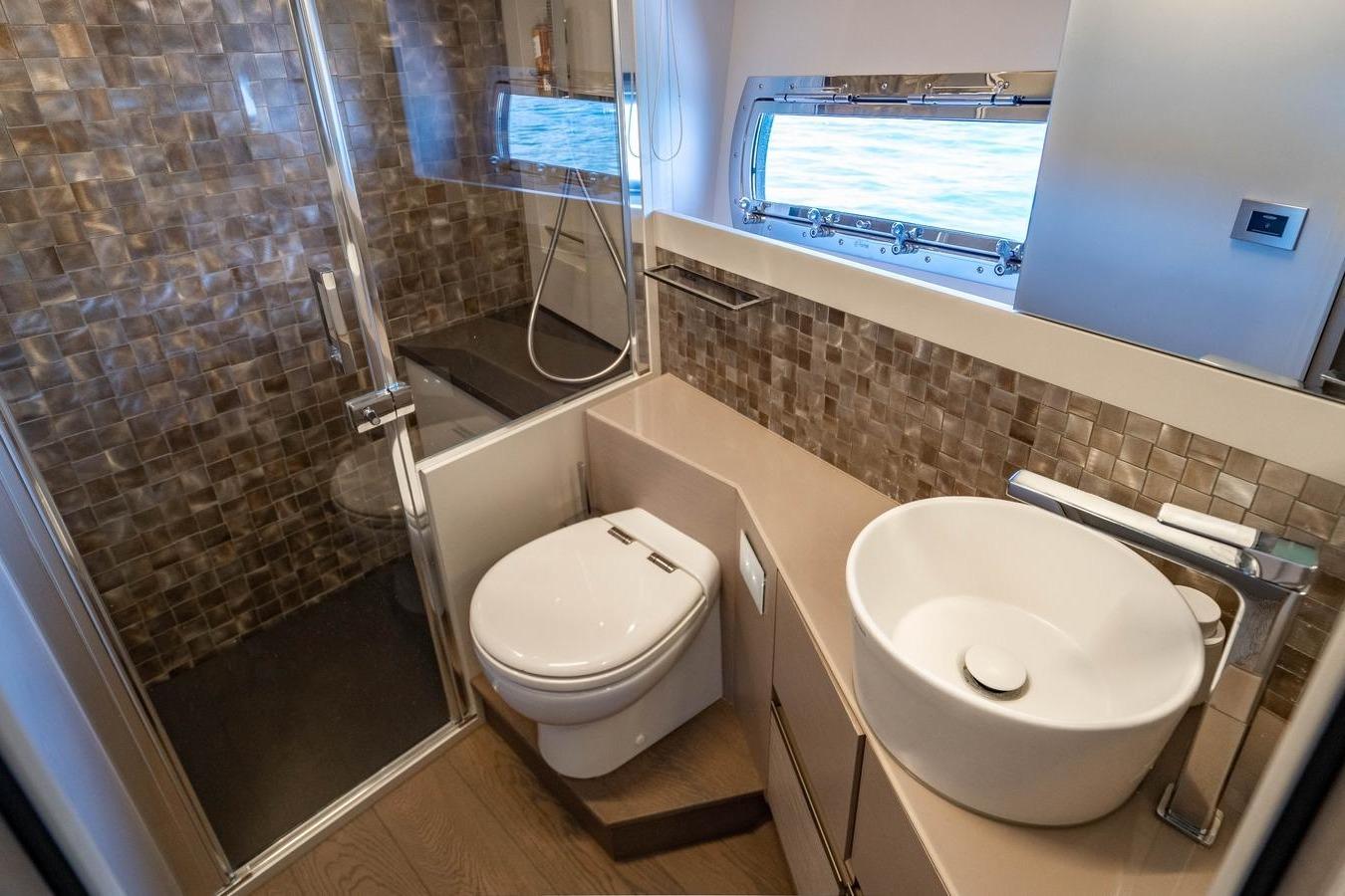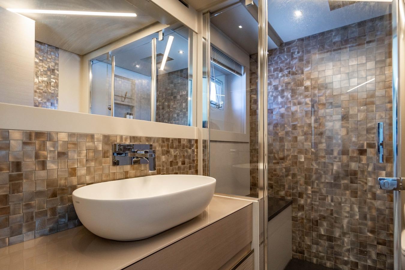 This luxury motor yacht has accommodation for six guests in three cabins. All located on the lower deck, the arrangement comprises a full-beam master suite, VIP double, and a guest twin - all of which are en suite.