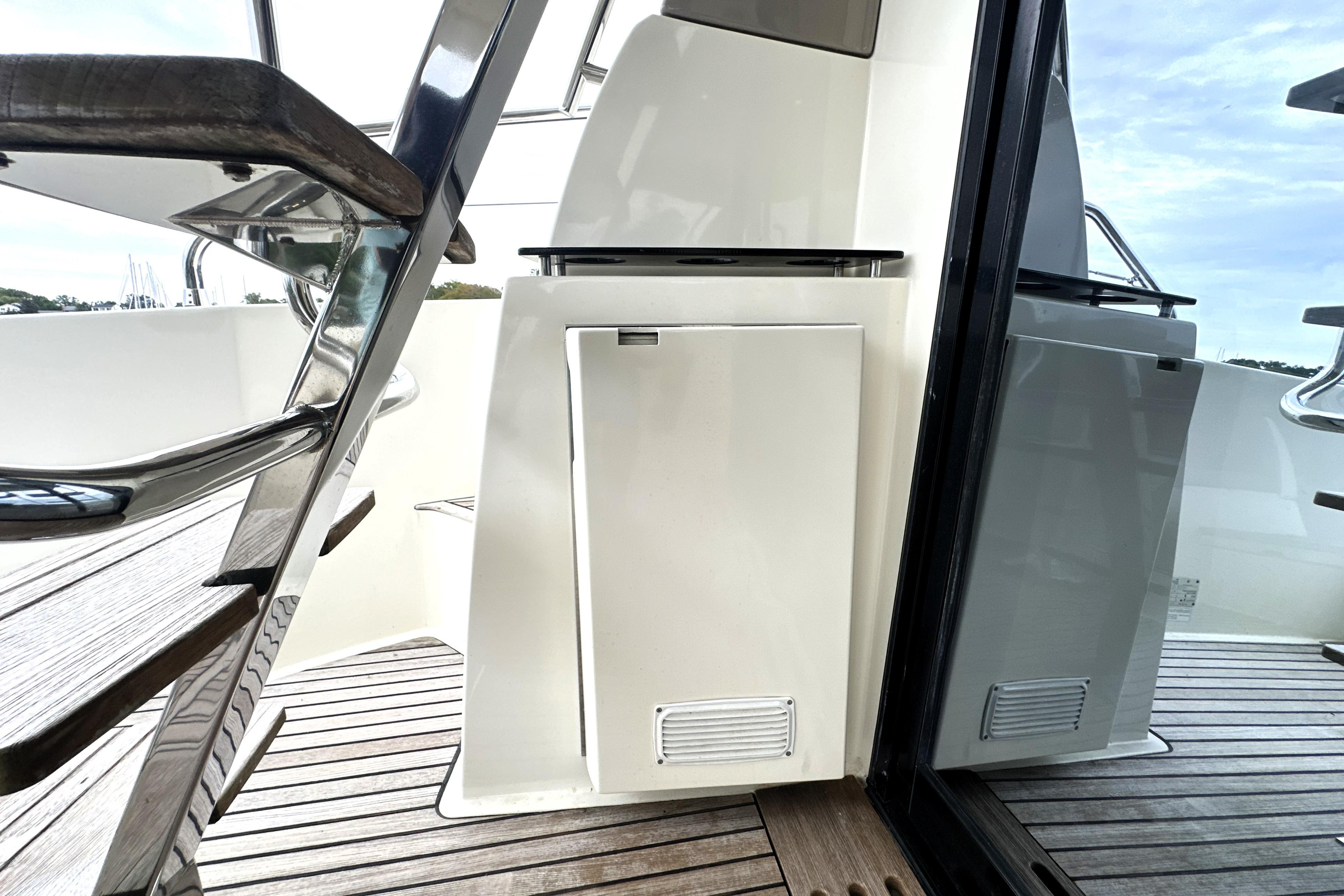 This Prestige 450 Fly offers an impressive blend of livability, performance, and luxury. The hydraulic platform makes tender handling effortless, while the upgraded Raymarine electronics suite ensures confident navigation. The spacious flybridge with galley, retractable sun protection, and Bose audio system create an ideal entertaining space. Inside, the tropical-grade chilled water A/C, refined mahogany finishes, and premium appliances provide all the comforts of home at sea.