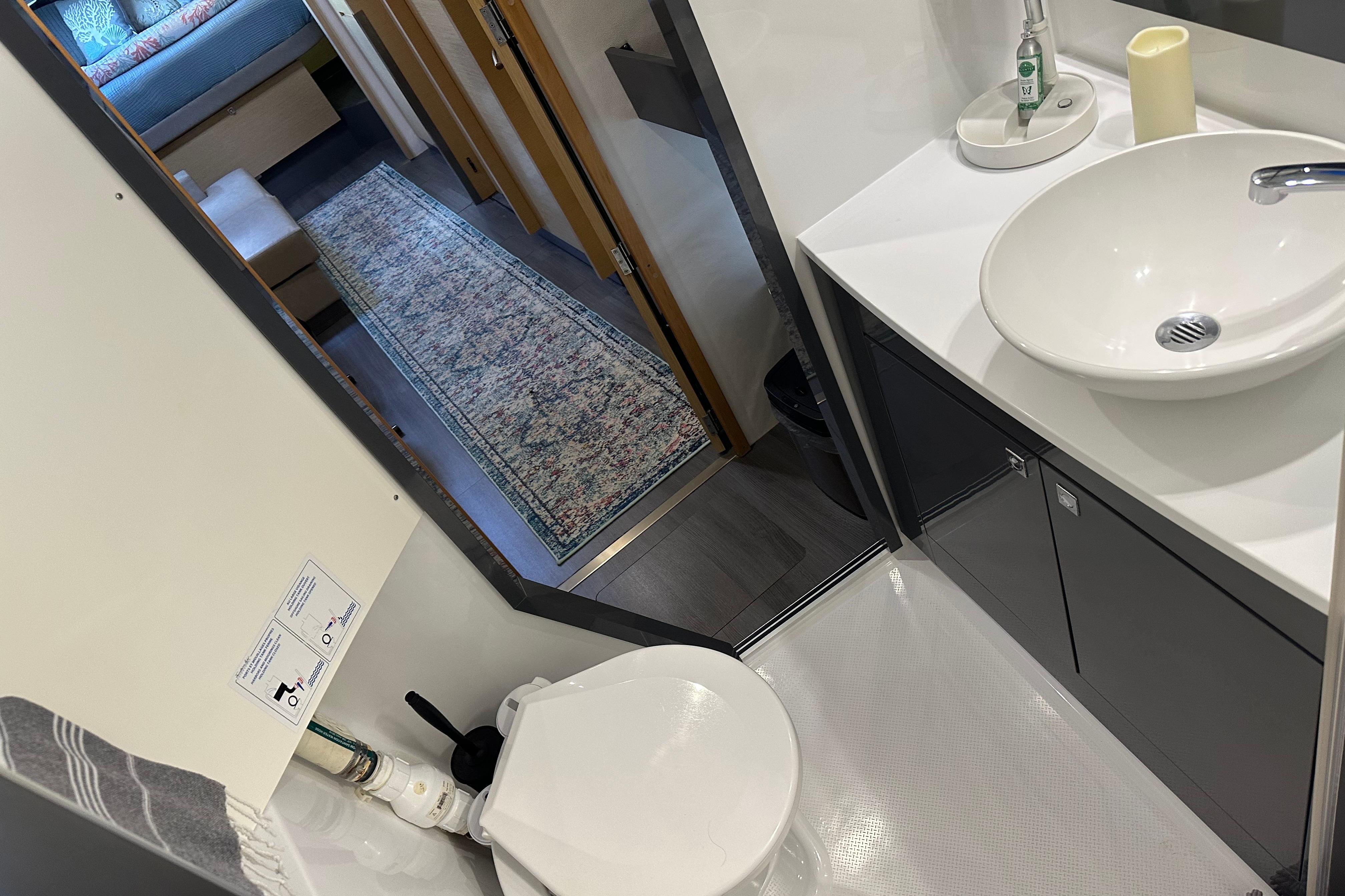 - A spacious owner’s suite featuring an island berth, private en-suite head, and walk-in shower