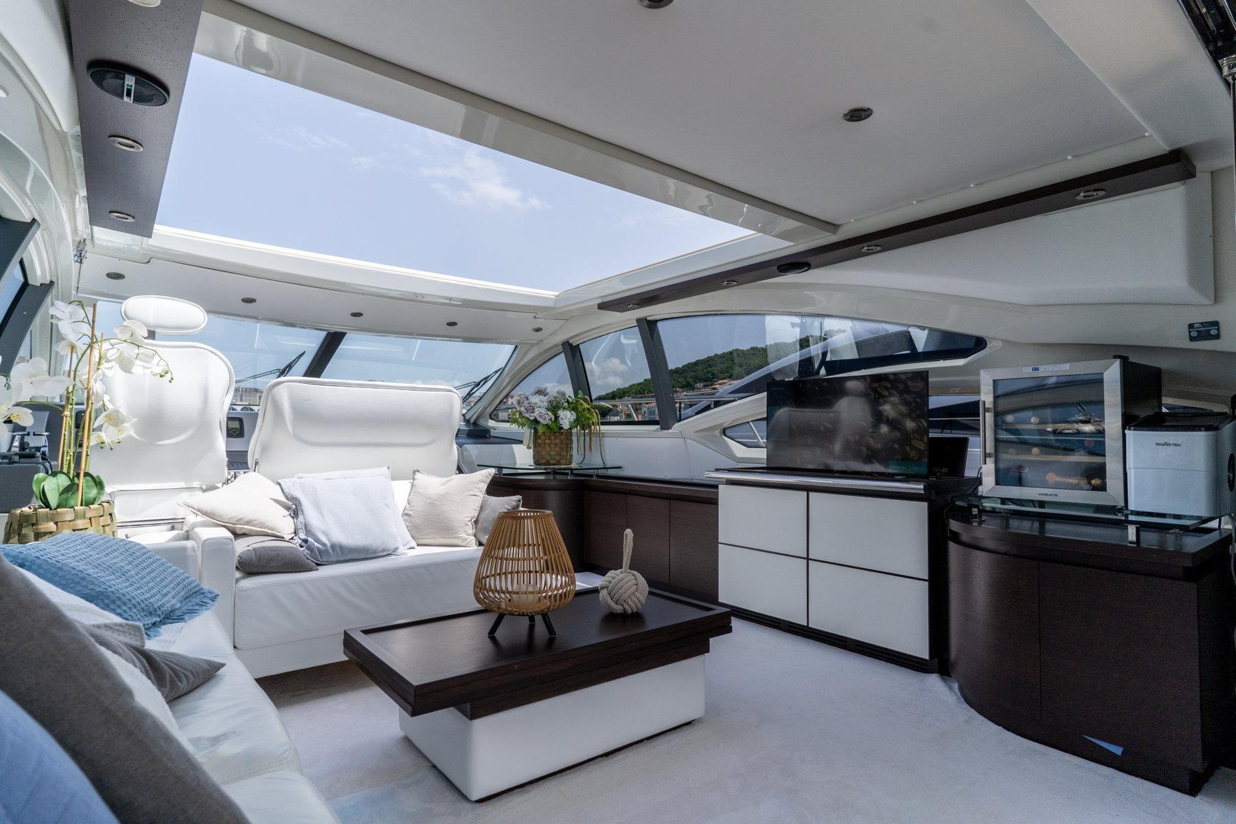 - cockpit wetbar with Waeco fridge, ceramic hob & sink;