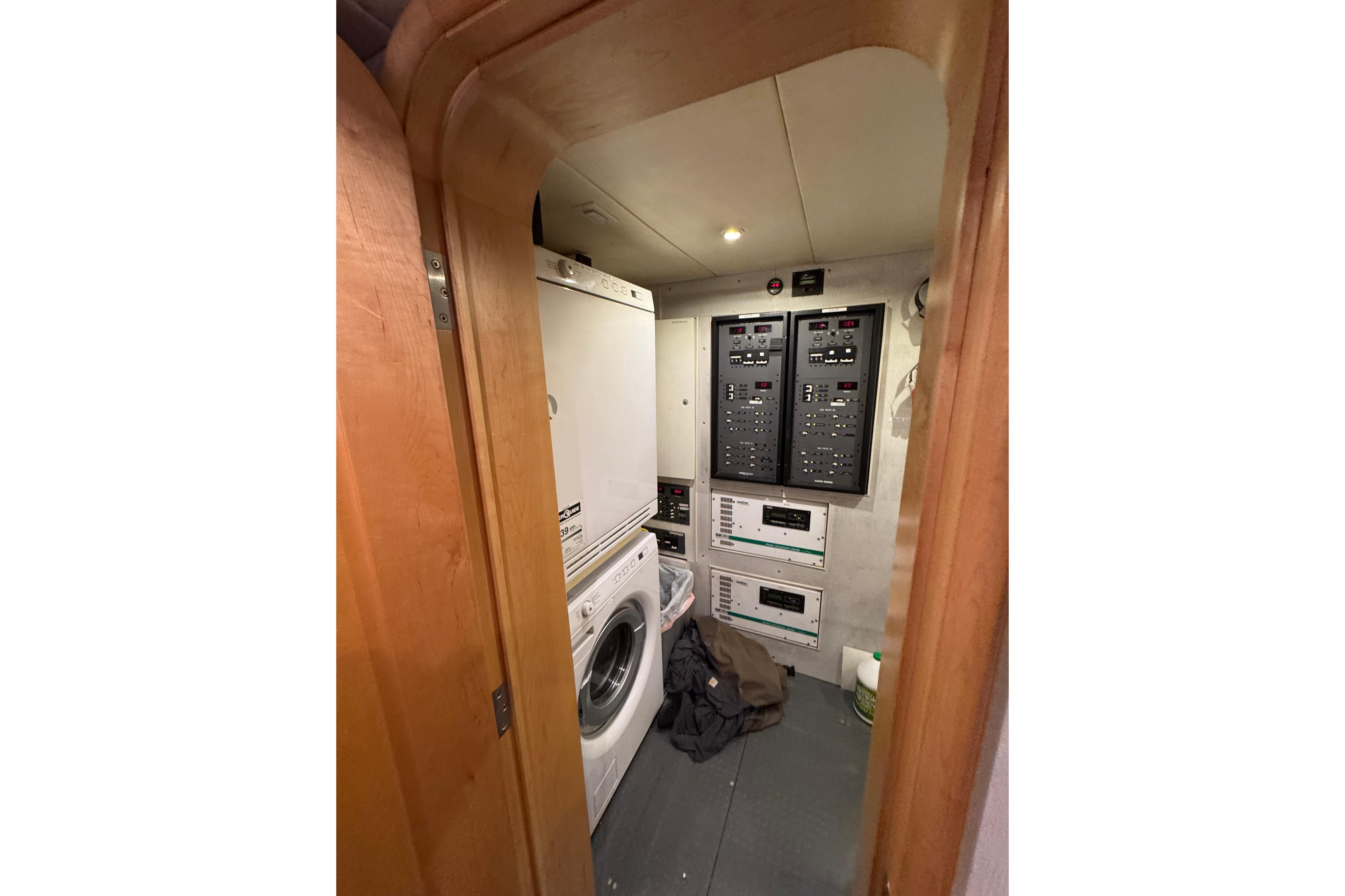 The utility room provides a large work area for housing equipment and provides a separation between the staterooms and the engine room. A watertight door to the engine room has a view port.
