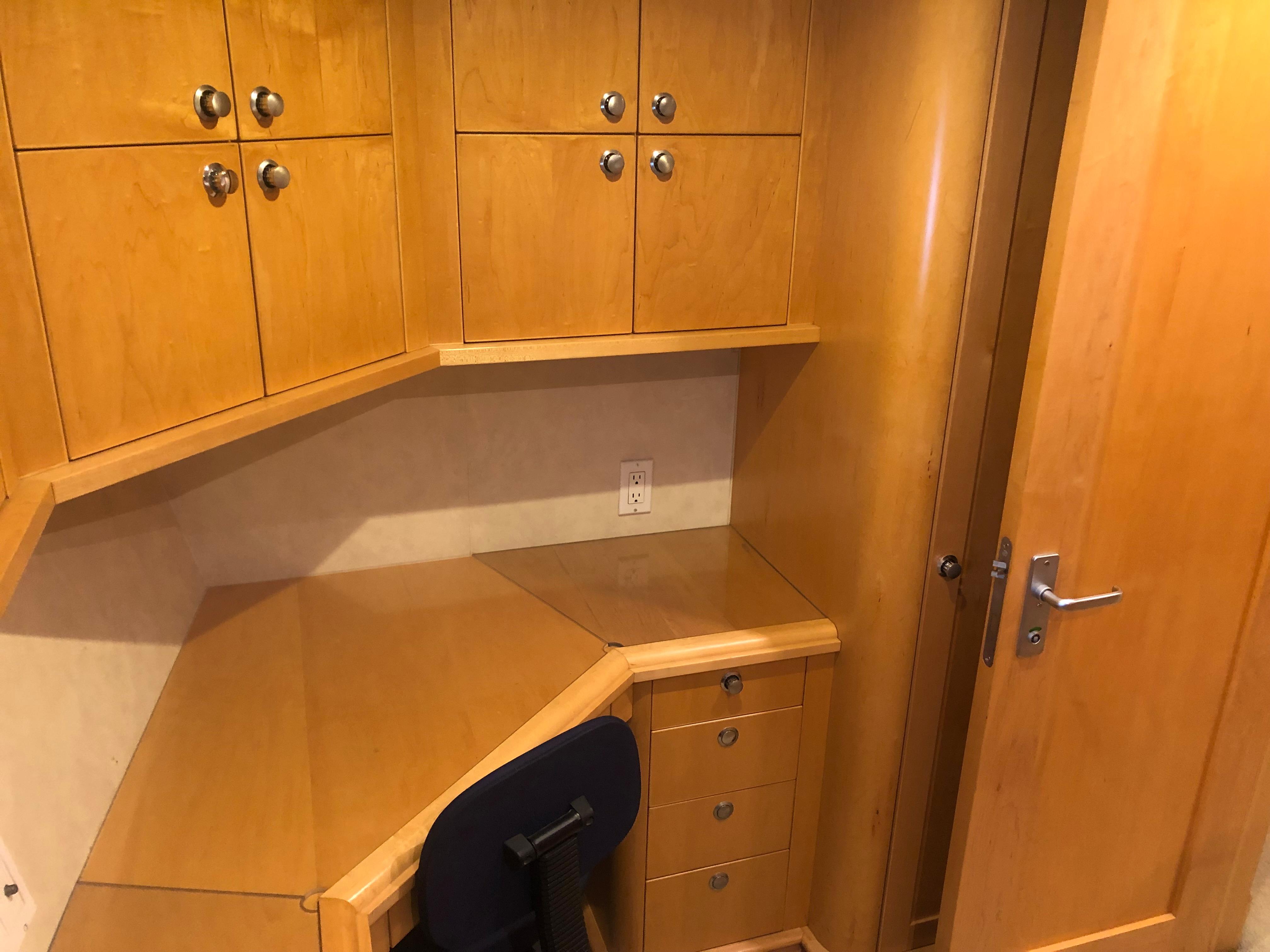 Accommodations include 3 staterooms, an office, and two heads. Five watertight exterior doors provide access to the living areas. All cabinetry is Canadian Birdseye maple with rounded corners and finely executed by the Cape Horn furniture team. Opening portlights in all cabins. Dimmer light switches throughout. Soles are ceramic tiles or carpeted. Sound insulation beneath all carpeting.