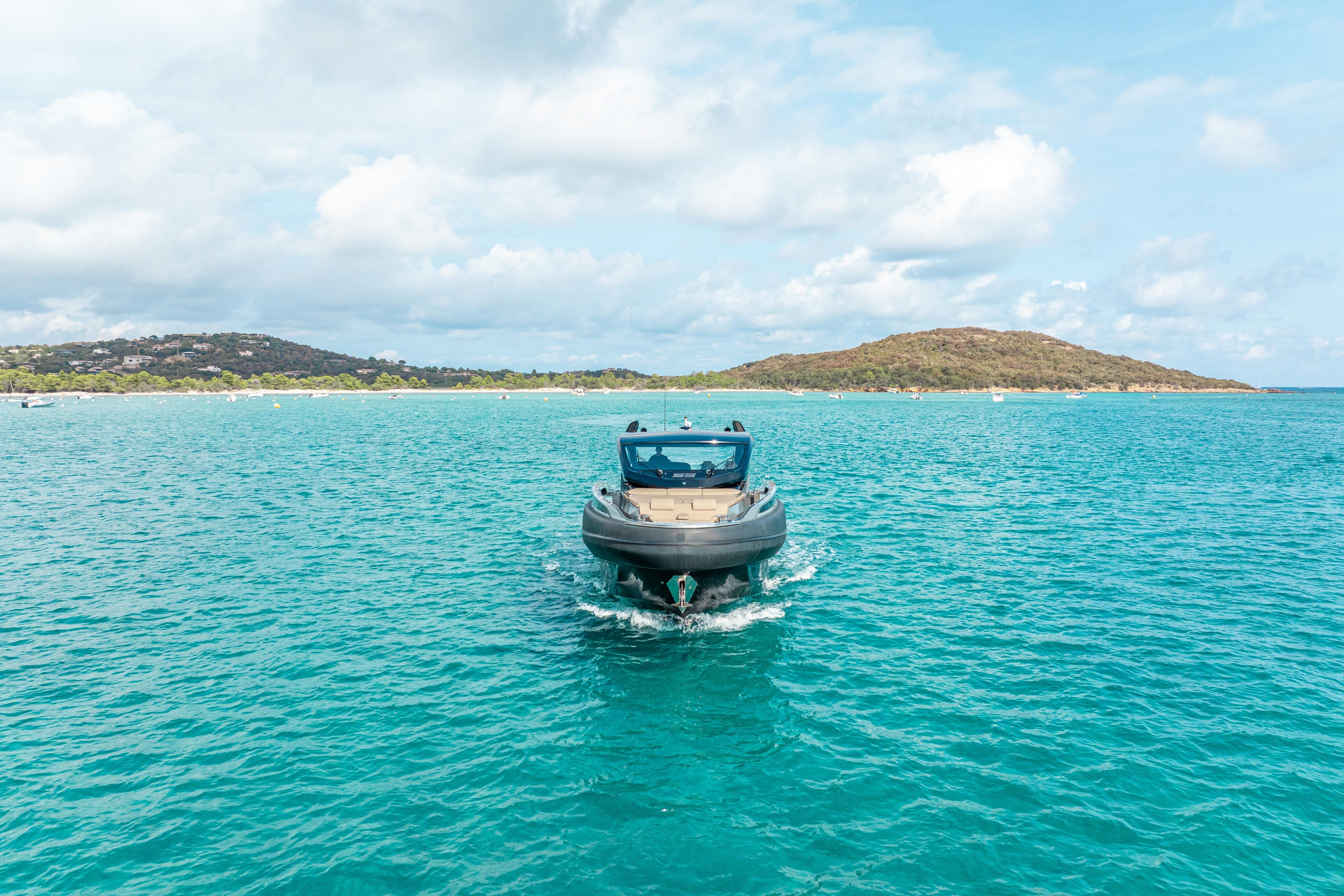 Powered by twin 725 hp Volvo Penta IPS engines, she reaches 38 knots with efficient, stable performance from her deep-V hull.