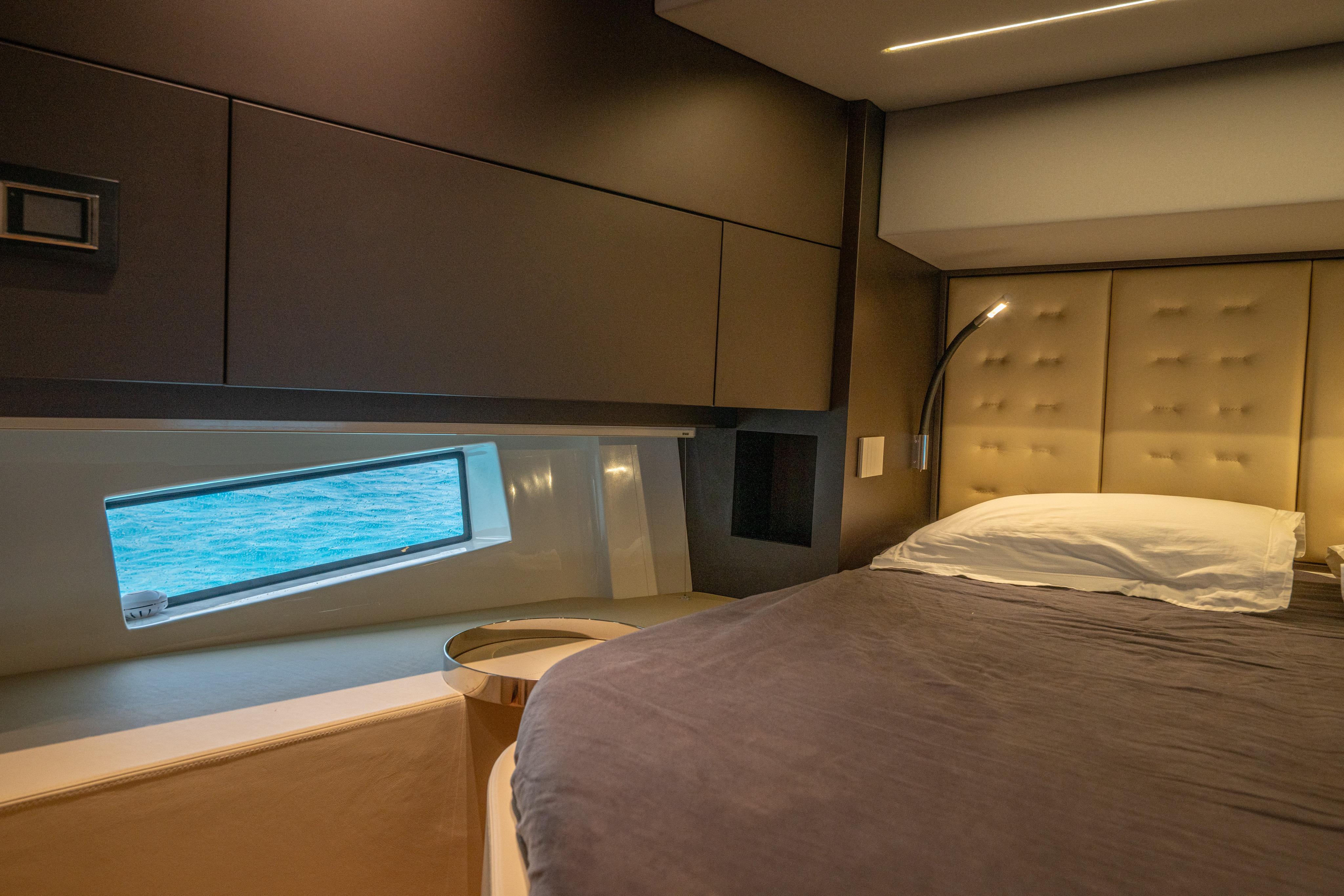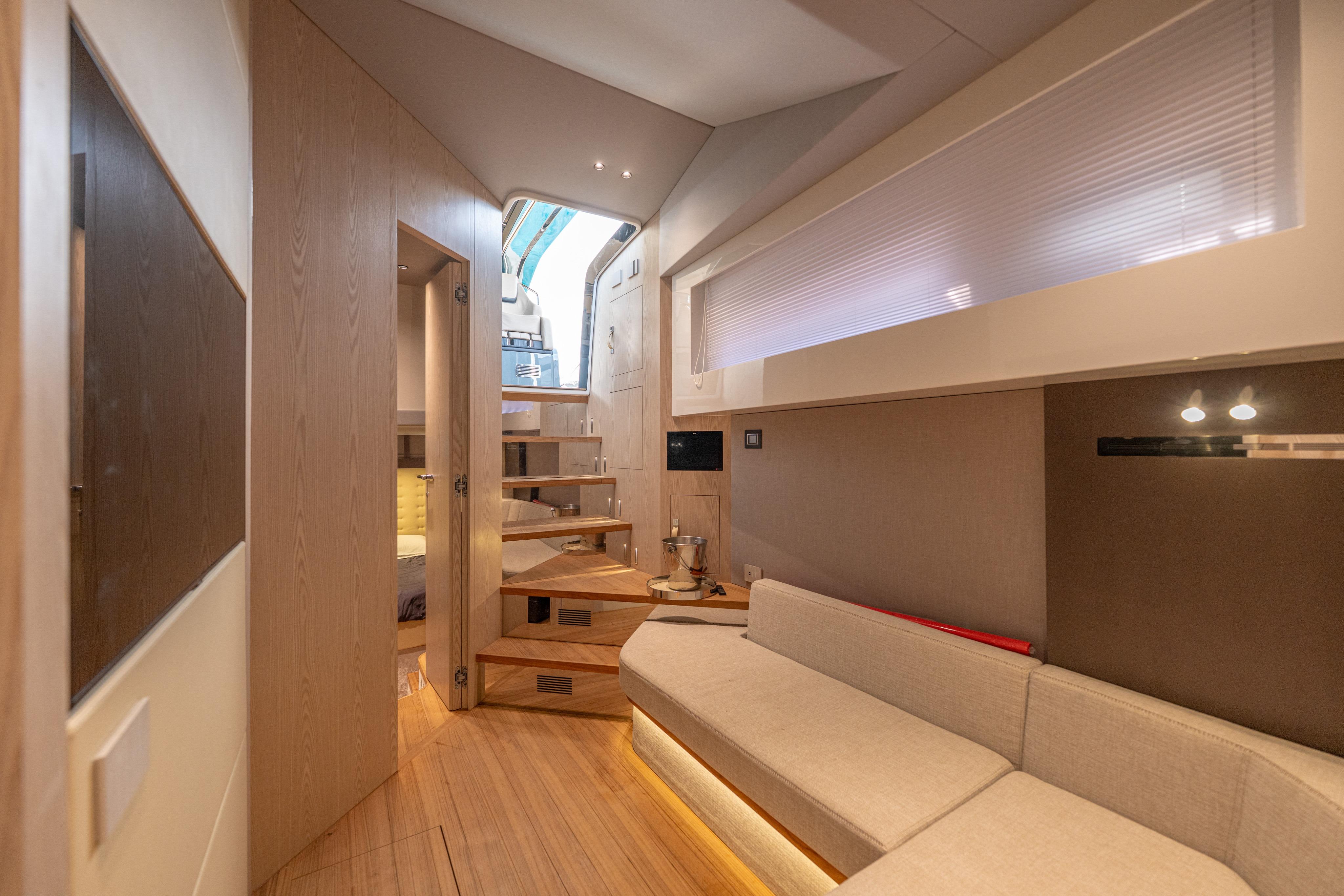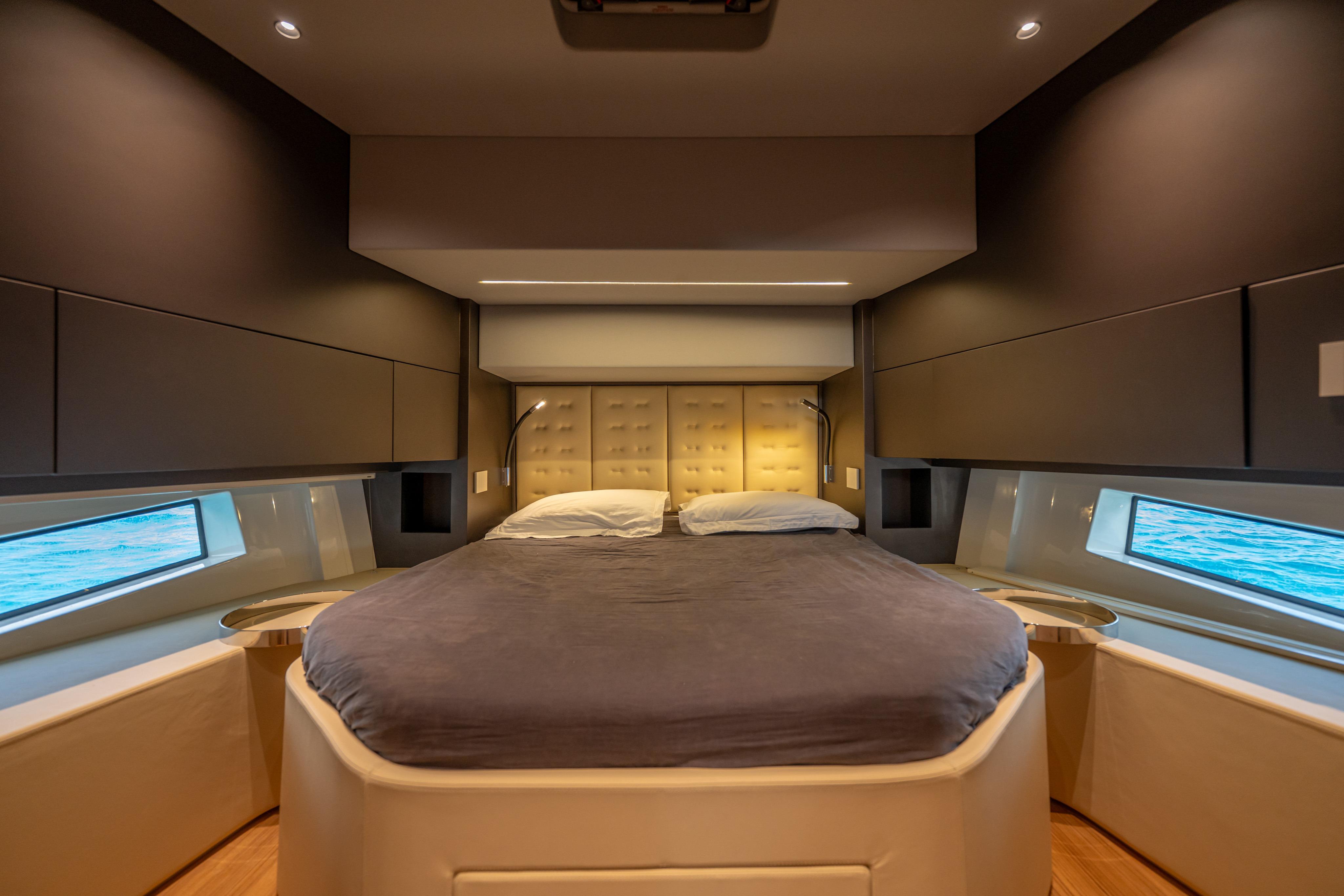 Below deck, two ensuite double staterooms showcase premium finishes and clever design, offering true luxury for day cruising or extended stays.