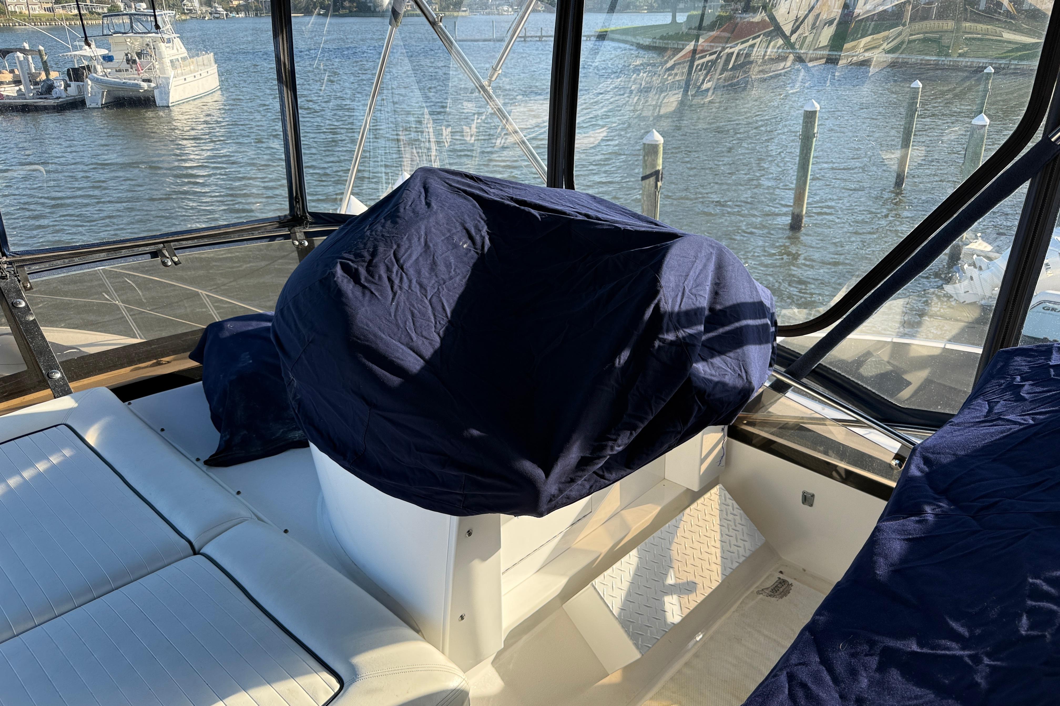 Flybridge: Custom full enclosure with Strata Glass isinglass, Garmin 7616 Chartplotter, radar, AIS & VHF.