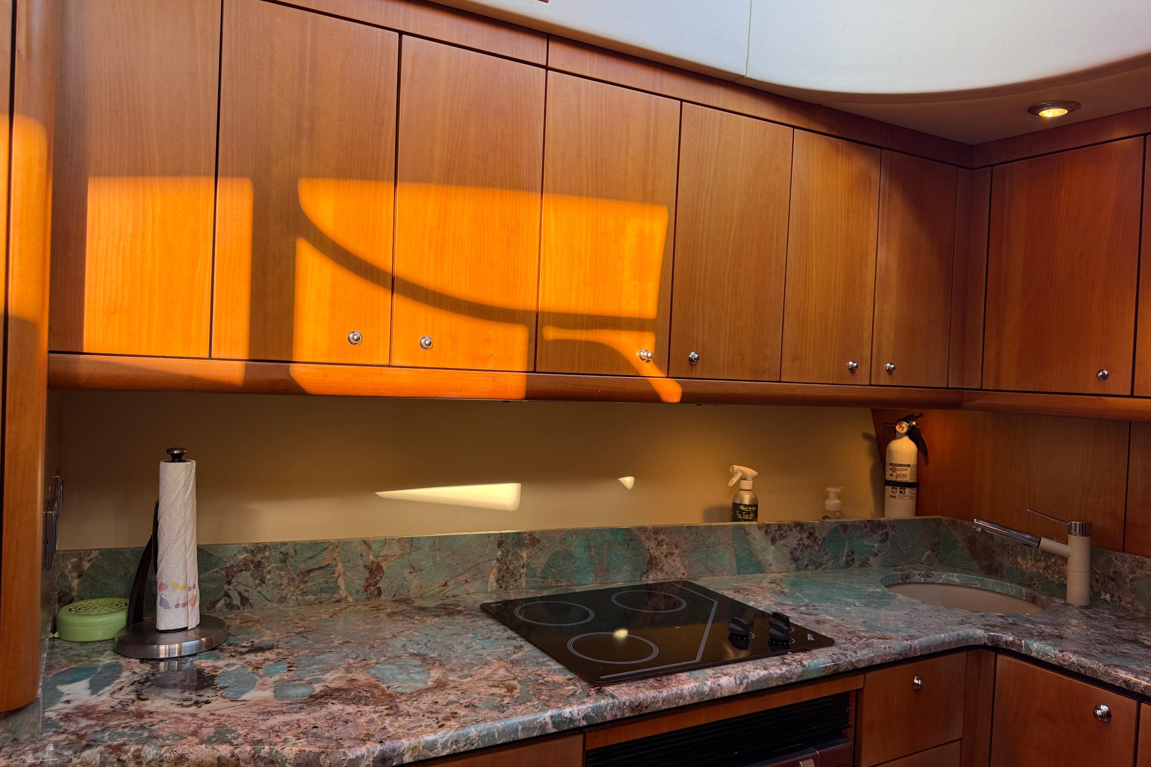 Just out of the yard, she received $40,000 in cosmetic upgrades and a full ceramic coating on the topside for easy maintenance and a brilliant finish.