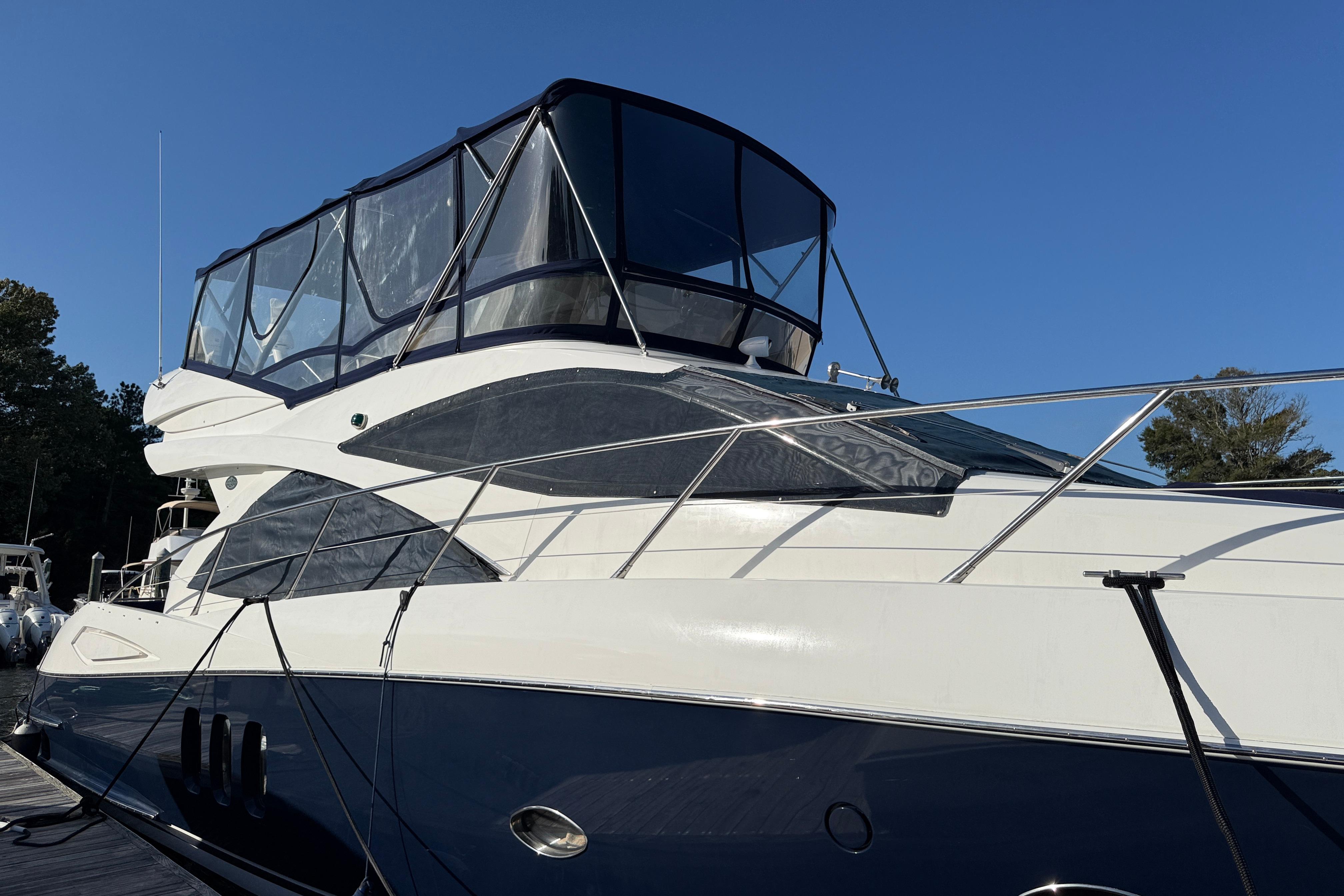 This 2008 Sunseeker Manhattan 50 is not your average Manhattan – it’s a meticulously maintained, heavily upgraded, captain-run yacht that stands out with a truly unique custom Flybridge helm and full enclosure. The Flybridge is the largest in its class, offering unmatched entertaining and cruising space. She has 3 Staterooms, 2 full Heads and a "Crew Cabin w/Head." She is also Great Loop Capable with a max height to the top of the Aft NAV light of under 21'