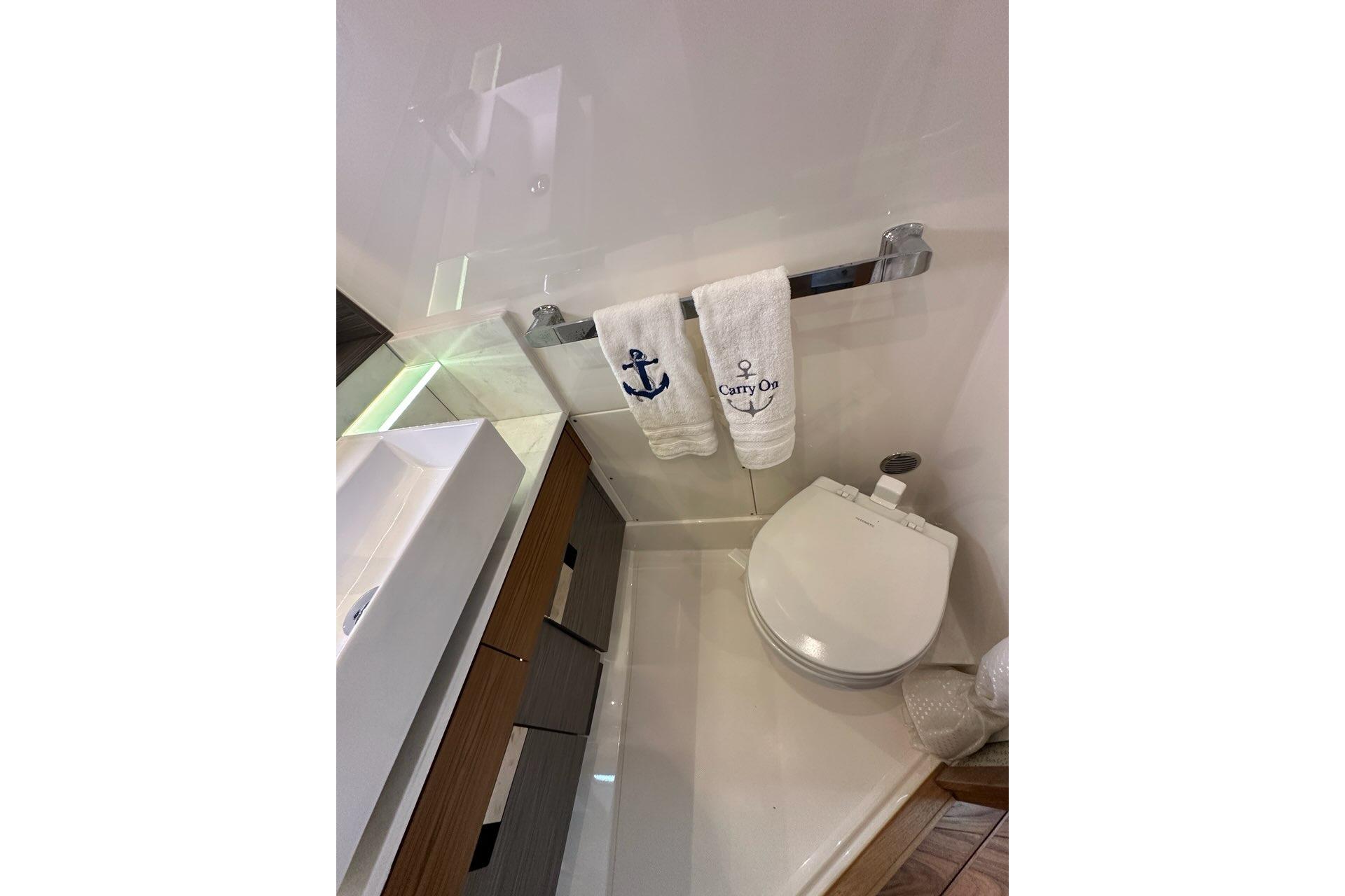 - Full Fiberglass Private Head Compartment with Non-Skid Floor