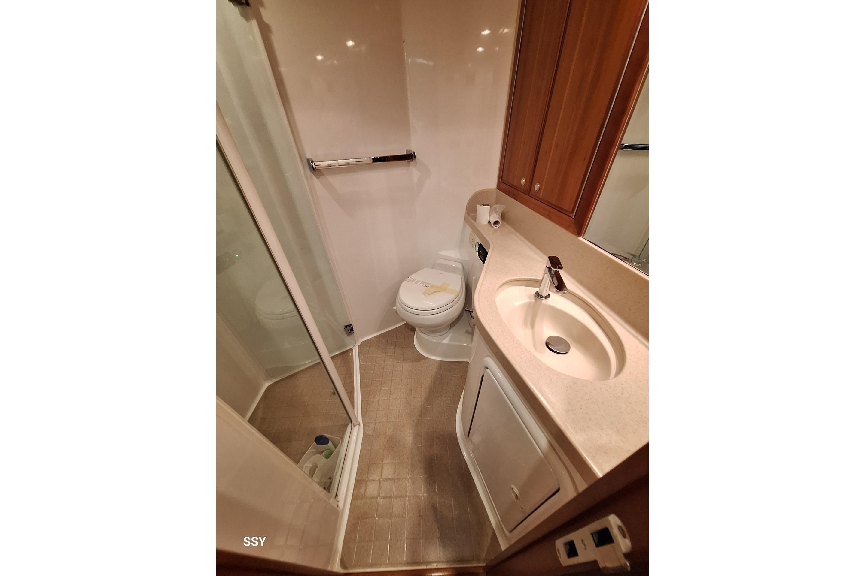 Forward master cabin with double bed, en-suite bathroom with shower stall, and Sharp LCD TV;Midship VIP double cabin on the starboard side with LCD TV and Sky decoder + Guest cabin with bunk beds on the starboard side + sharing Guest bathroom complete with shower.