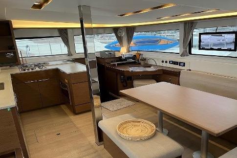 Introducing the stunning 2020 Lagoon 46, a remarkable power catamaran that embodies elegance and performance. With an overall length of 13.99 meters, this vessel is designed for both comfort and adventure on the water. Crafted from durable fiberglass, it boasts a sleek and modern hull that enhances its aesthetic appeal and navigational capabilities. Equipped with twin Yanmar inboard engines, each delivering 57 horsepower, the Lagoon 46 ensures a cruising speed of 8 knots, making it perfect for leisurely excursions or spirited sailing. Accommodating up to six cabins, this catamaran offers ample space for relaxation and socializing, making it an ideal choice for family outings or entertaining friends. With its advanced features and spacious layout, the Lagoon 46 is not just a boat; it's a gateway to unforgettable experiences on the open sea. Embrace the freedom of the water with this exceptional vessel.