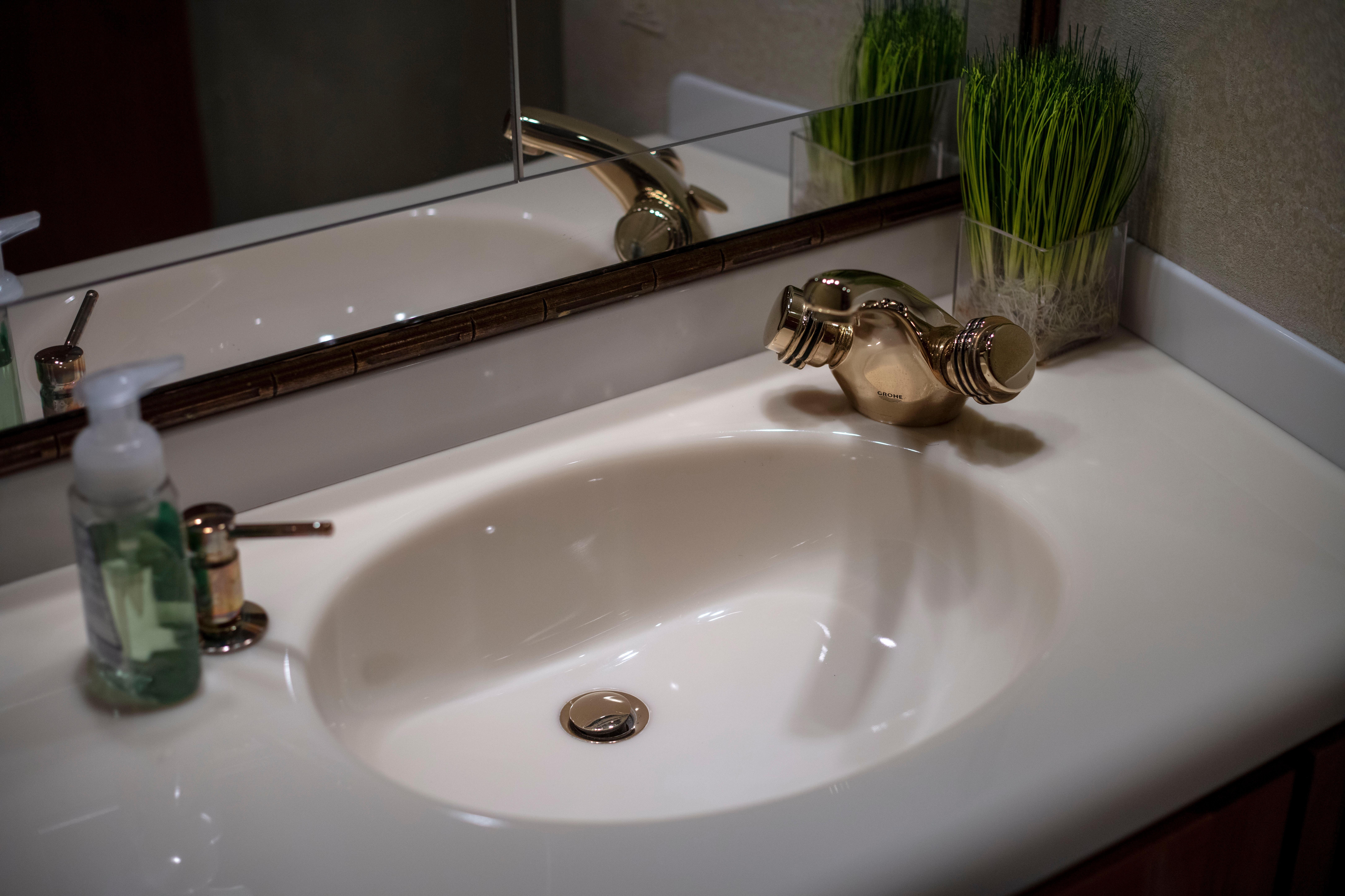 Bar with sink, refrigerator, and Toshiba flat-screen TV