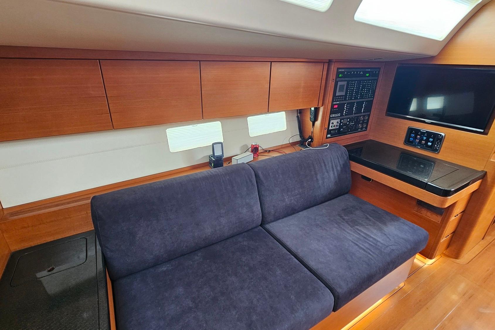 - Carbon pedestals with controls for all winches, the mainsail traveller, the keel drive, the anchor drive, and the emergency gust button.