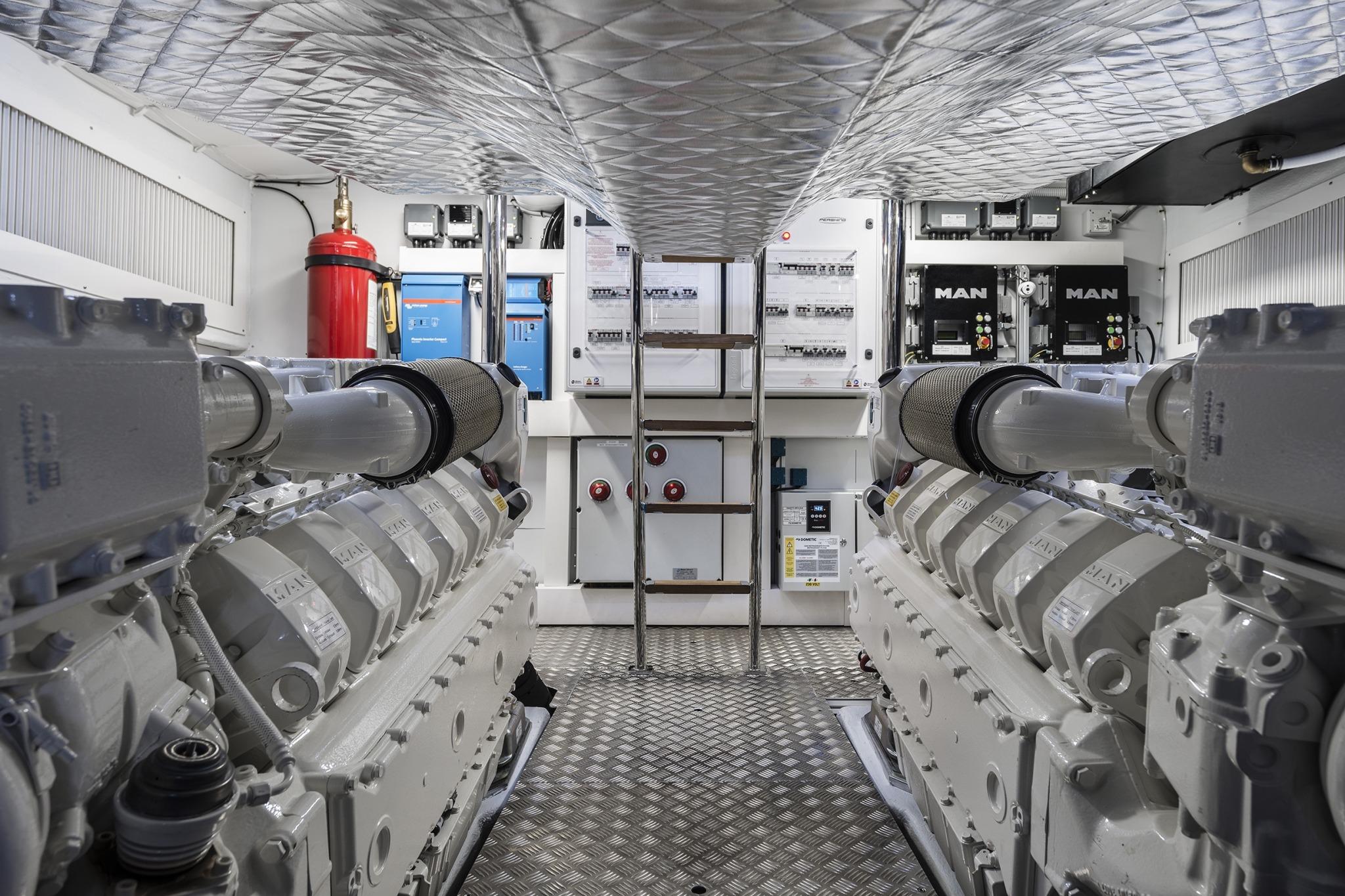 The pioneering construction solutions allow the Pershing 7X to reach the incredible speed of 50 knots. The boat comes with 1800 MHP twin MAN V12 engine. The innovative Dynamic Positioning System lets Pershing 7X maintain its position even when winds or currents are strong.