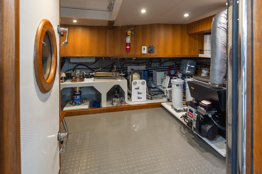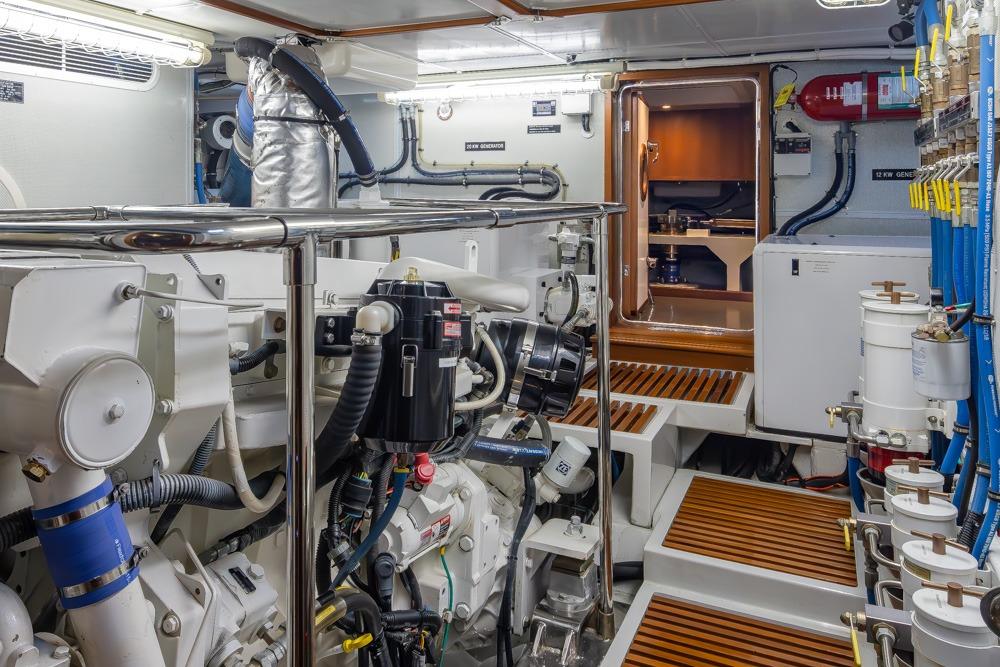 Access the Engine Room from the commissary or the lazarette hatch. The Engine Room is very spacious and has 6' of standing height.