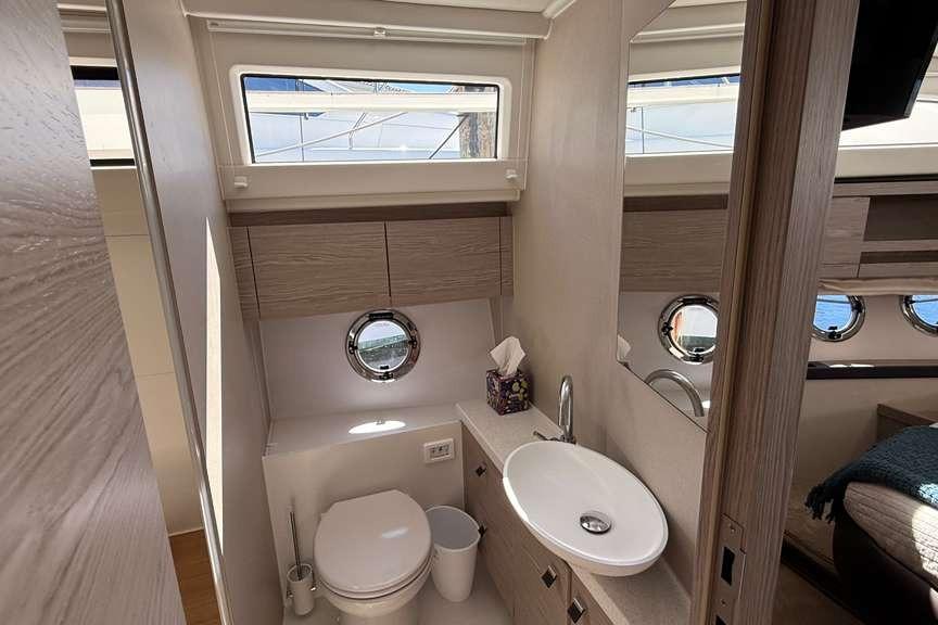 - Entertainment: A 40-inch LED TV with an electric sliding mechanism is in the salon. The yacht is pre-wired for Starlink satellite connectivity.