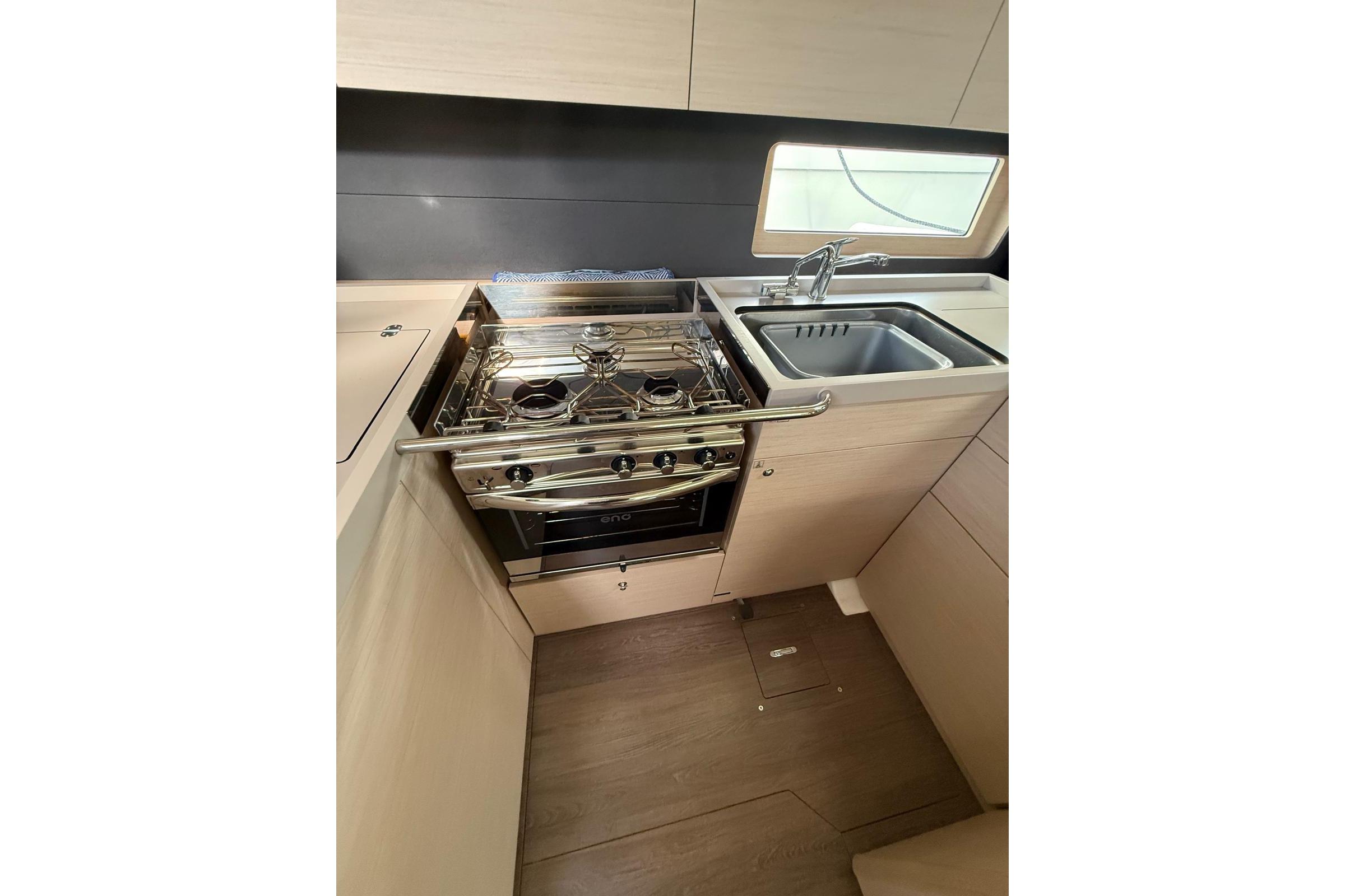 • Galley: Corian worktops , 1 large 130L fridge + 85L Ice Box , oven & stove