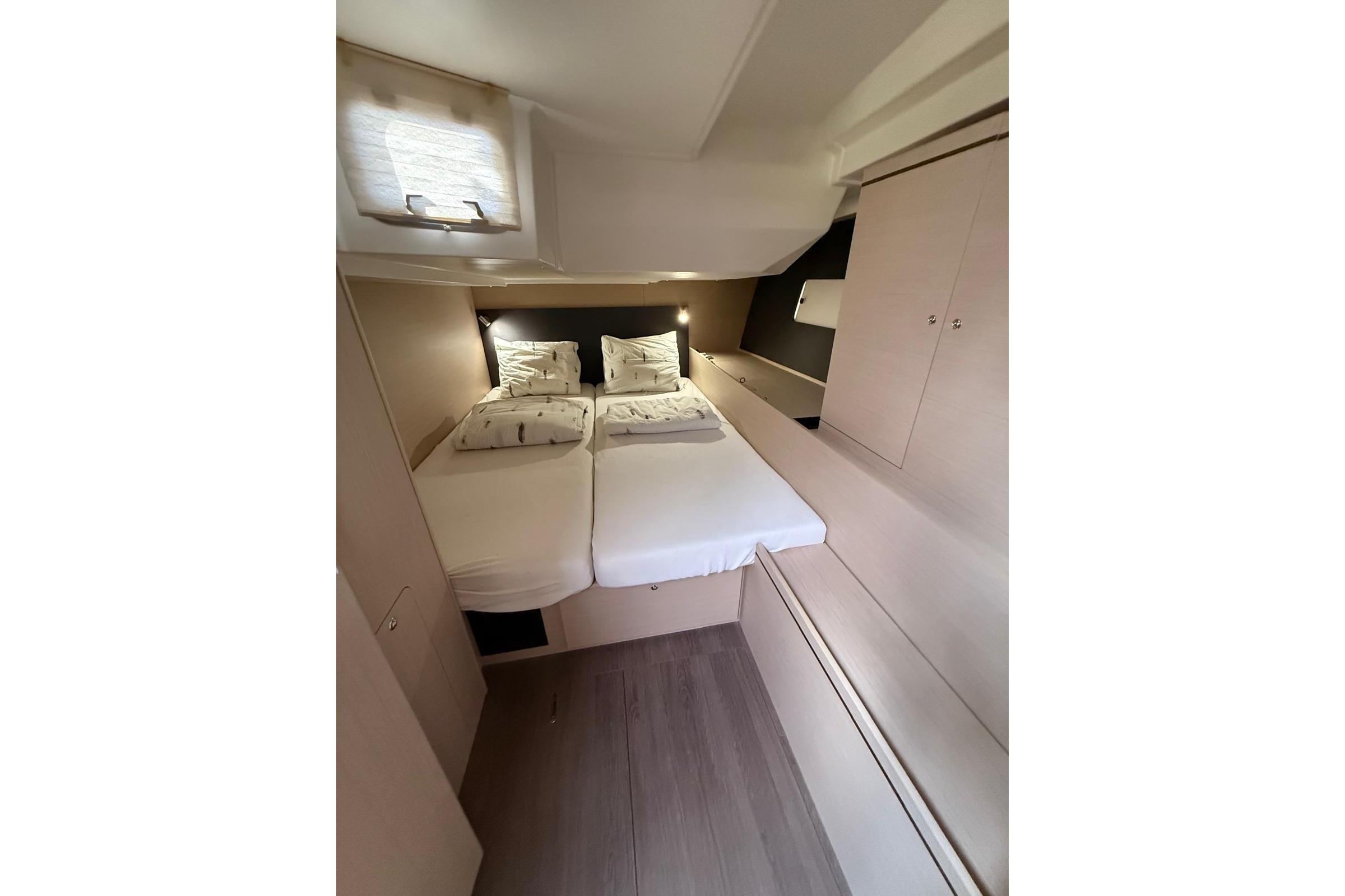 • Saloon: Large U-shape settee convertible to double bed + L-Shape settee and Nav-Station on port