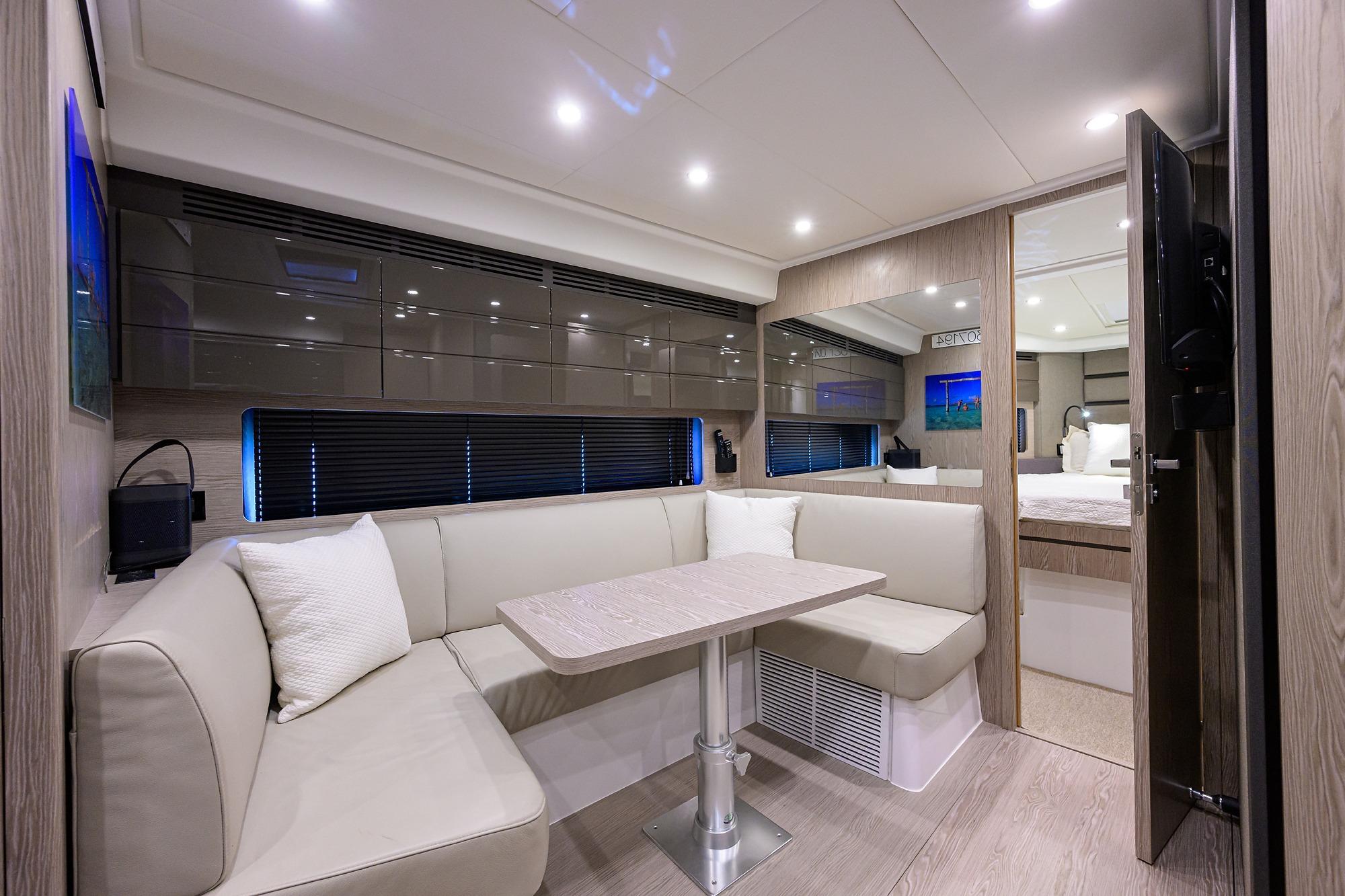 - Port area with convertible bench, cup holders (2) and storage compartments