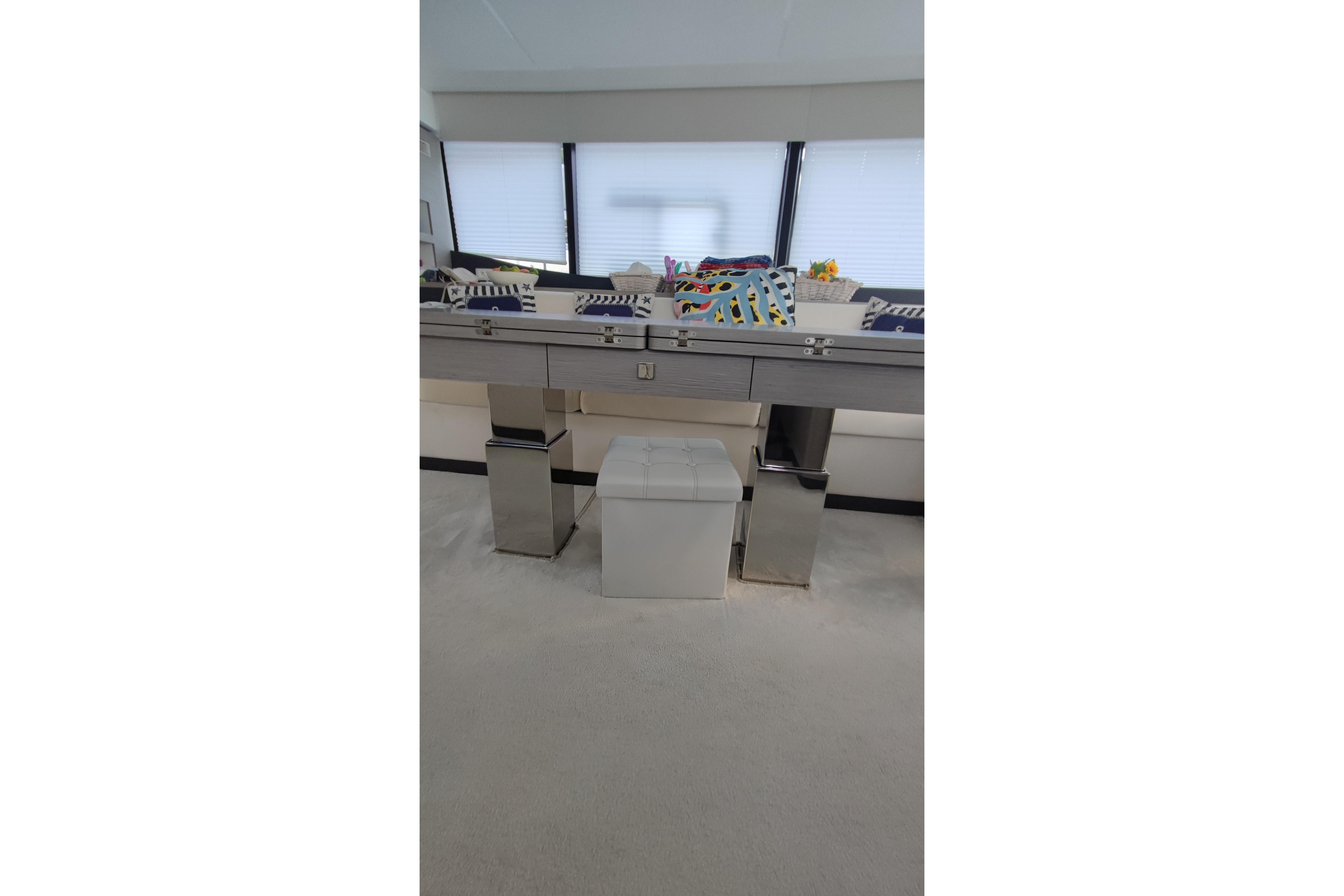 The foredeck features a lounge where you can enjoy the cool breeze or soak up the sun. The immense flybridge on this yacht, protected by a hard top, can comfortably accommodate all guests at any time of day. The back platform is ideal for swimming.