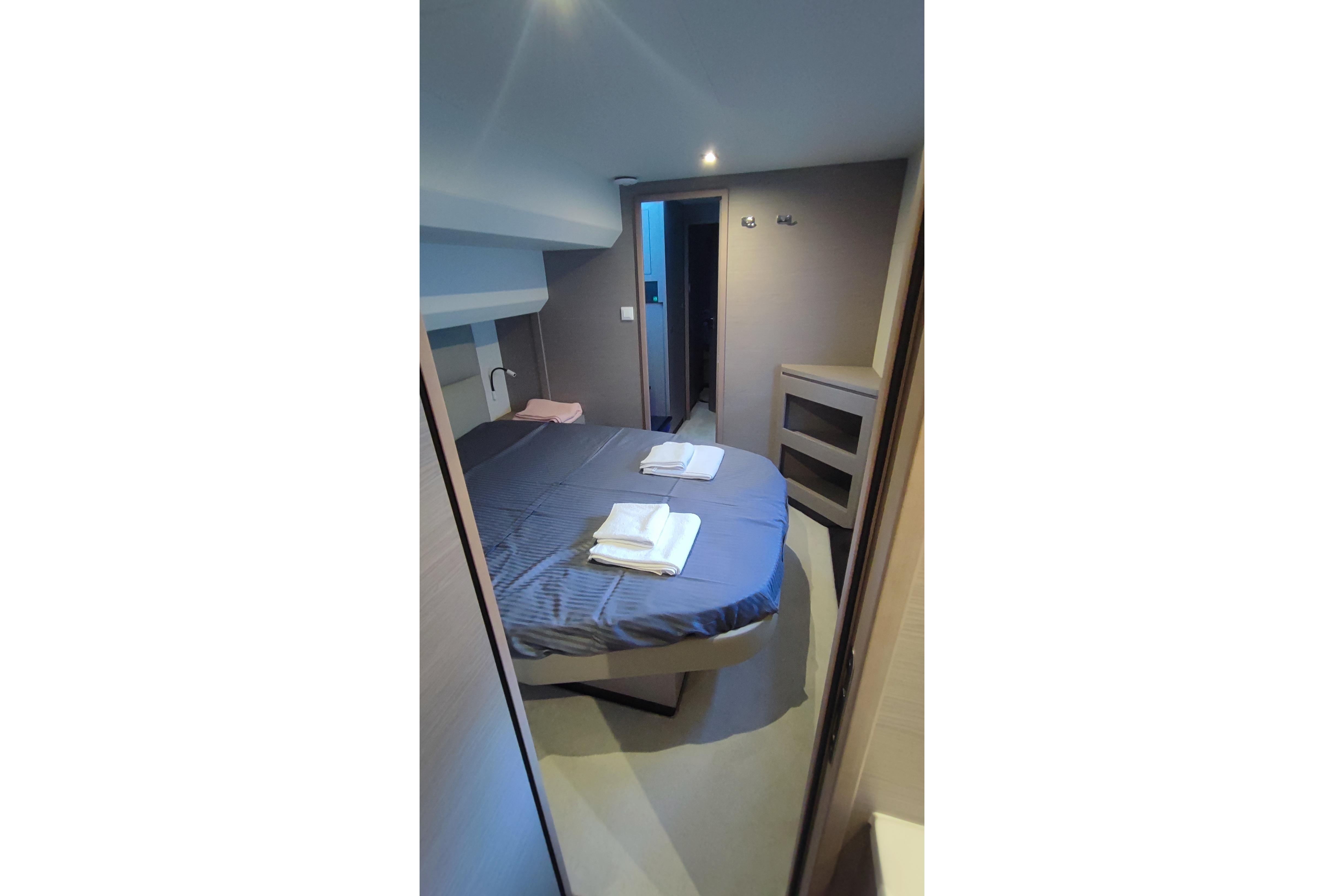 The catamaran is with an Owners suite and its ensuite bathroom, two double cabins each with ensuite bathroom, additional skipper cabin. The large saloon with its double sofa offers relaxation and comfort with breathtaking views. A hydraulic table can be adapted to cater for a number of different configurations. The galley has all the storage space and quality appliances you need for preparing a gourmet extravaganza.