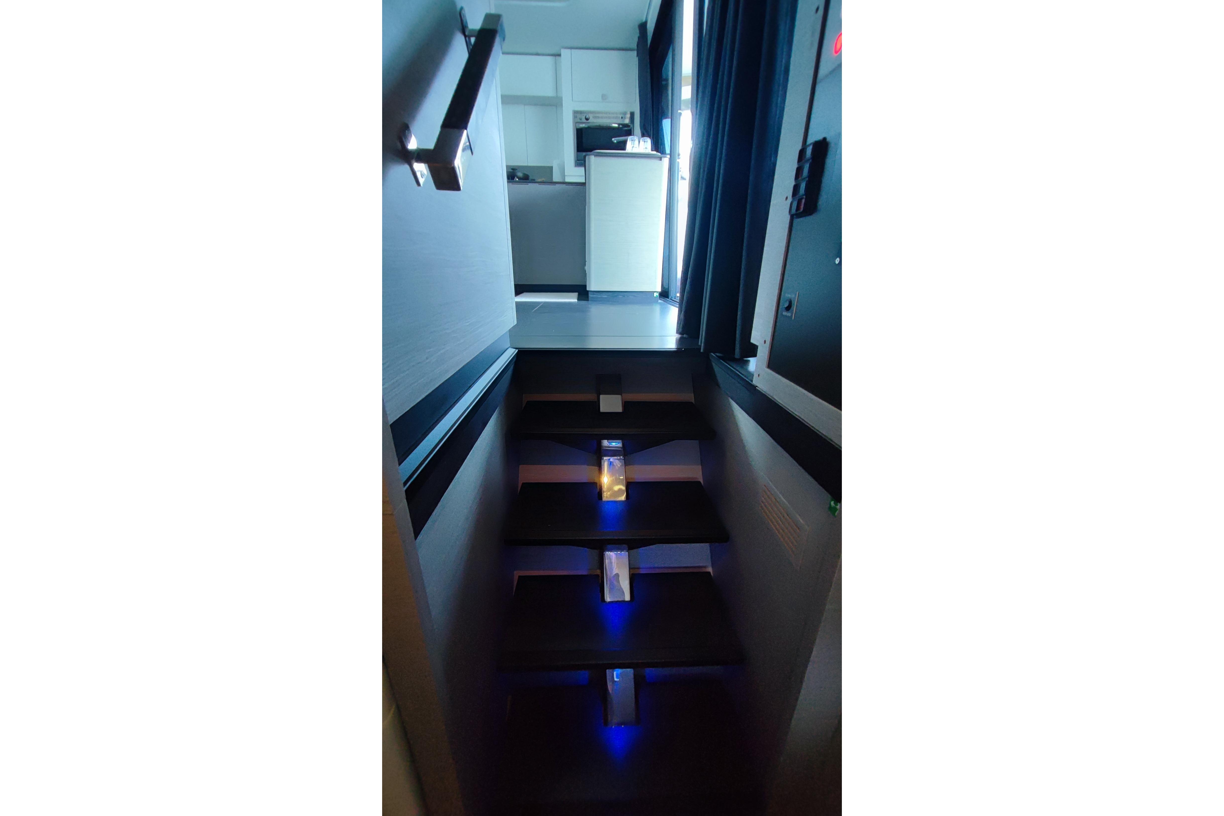 5kg washing/drying machine installed next to master cabin, powered by generator and shore power