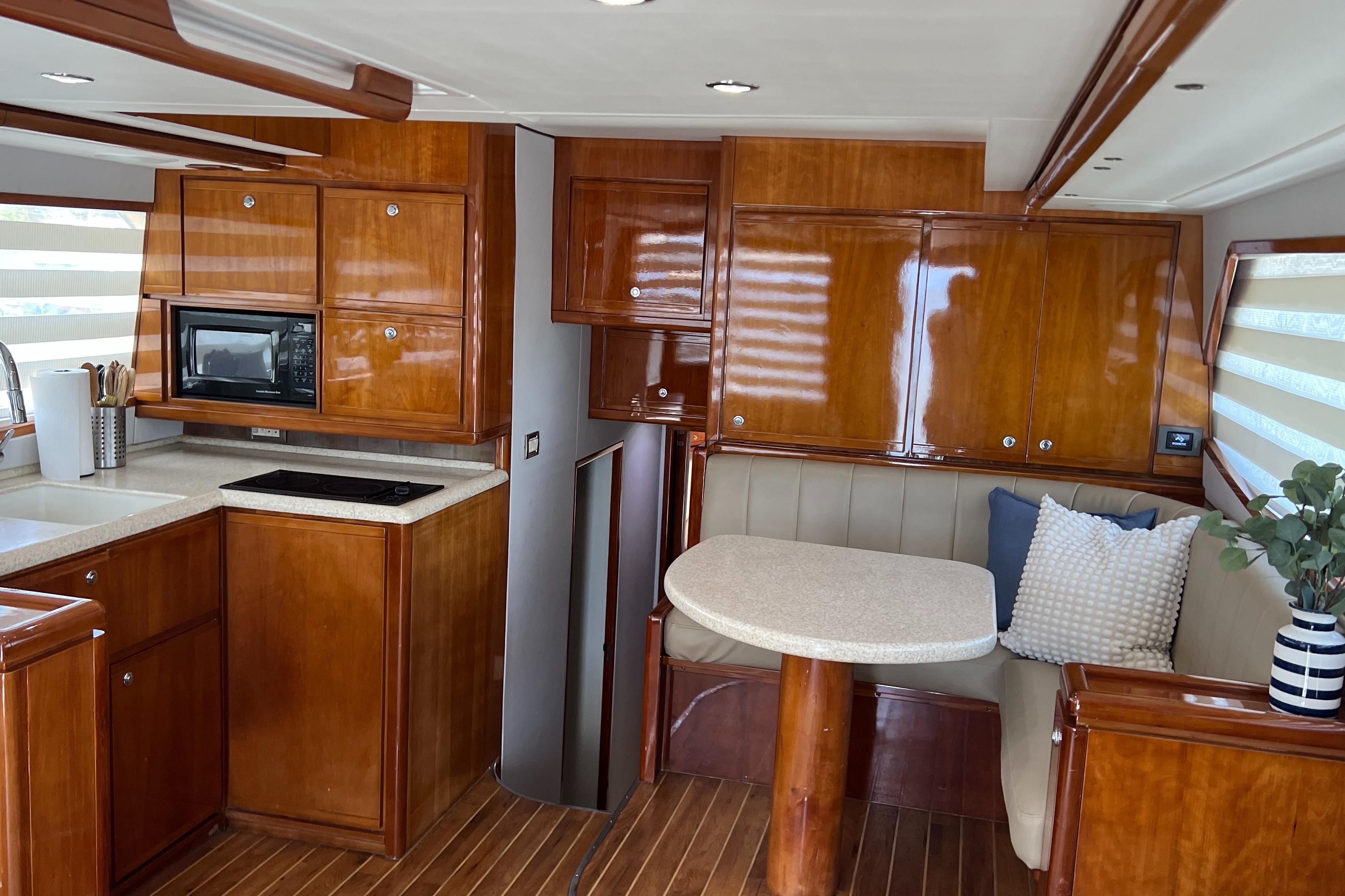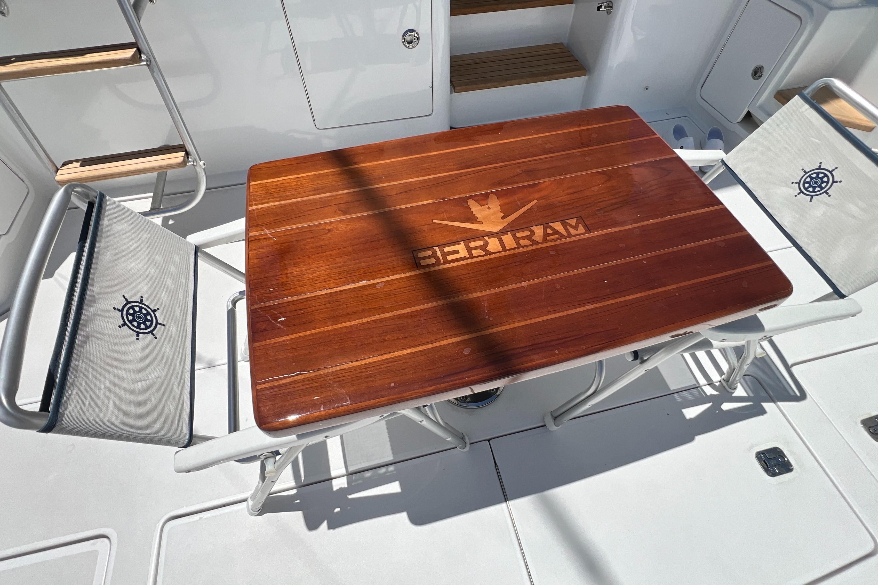 Introducing the remarkable 2005 Bertram 450, a stunning sportfish fish vessel that embodies both performance and luxury. With an impressive overall length of 48.25 feet, this boat features a robust fiberglass hull designed in a deep-vee shape (18 Degree dead-rise), ensuring stability and agility on the water. Powered by two MAN Common Rail diesel engines, each delivering 900 horsepower, it boasts a cruising speed of 27 knots, making it an ideal choice for both leisurely outings and serious fishing expeditions. Accommodating up to three cabins and two heads, the interior offers ample space for relaxation and comfort. The combination of its powerful engines and thoughtful design makes the "Dream On" not just a boat, but a gateway to unforgettable adventures on the open water. The layout consist of a Master Stateroom forward with private head access, starboard side side by side single berths and a third head with an upper and lower arrangement, both sharing a full head.